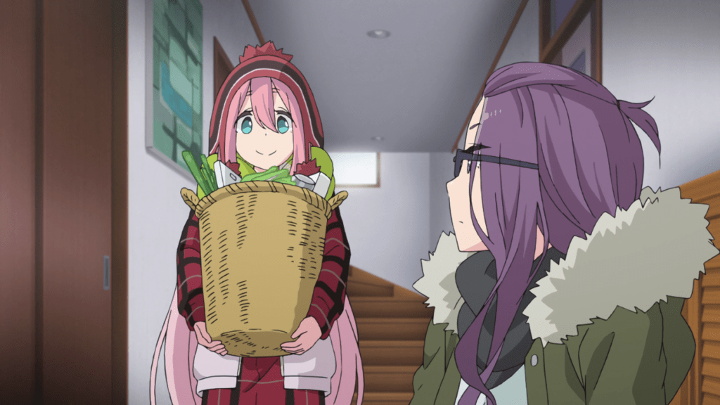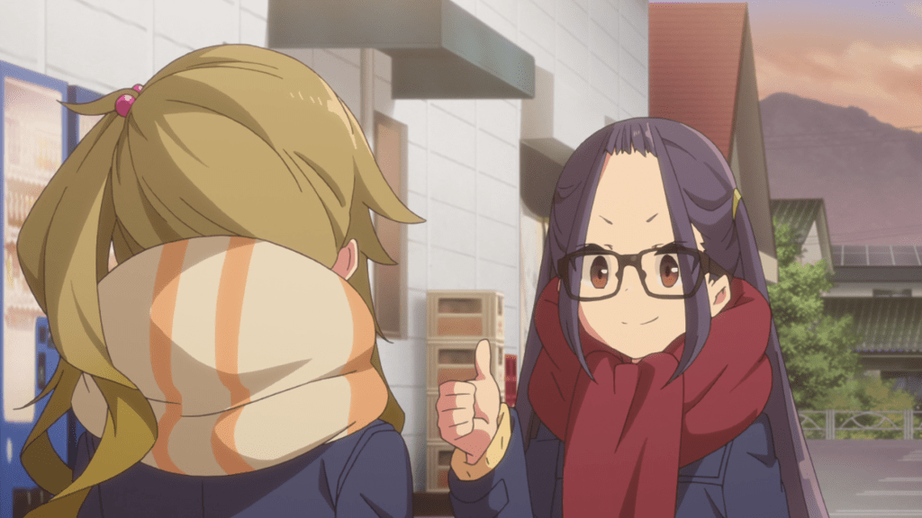 The ending serves as one last check in on Rin and Nadeshiko’s bond. By now, it’s all but confirmed that Rin sees Nadeshiko as her friend. That much is implied when she starts calling Nadeshiko by her first name and when she scrolls her pictures and pauses at a selfie the two of them took together. You also have Rin meeting up with Ena again to talk about the trip. Ena sounds happy that her little plan all worked out though there’s the amusing consequence of Rin acting more guarded around her. It’s not really anything permanent but it does make for a good laugh.