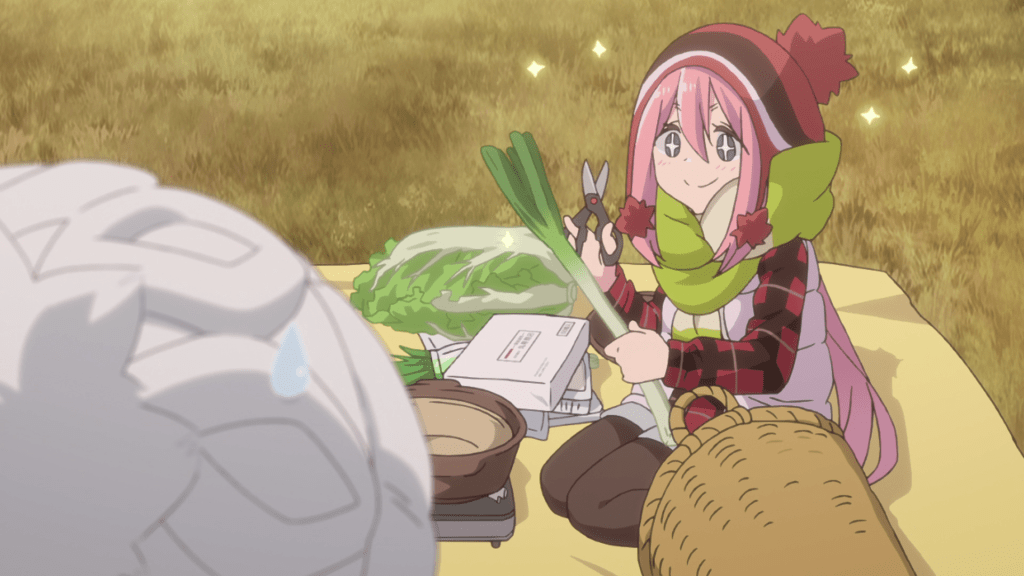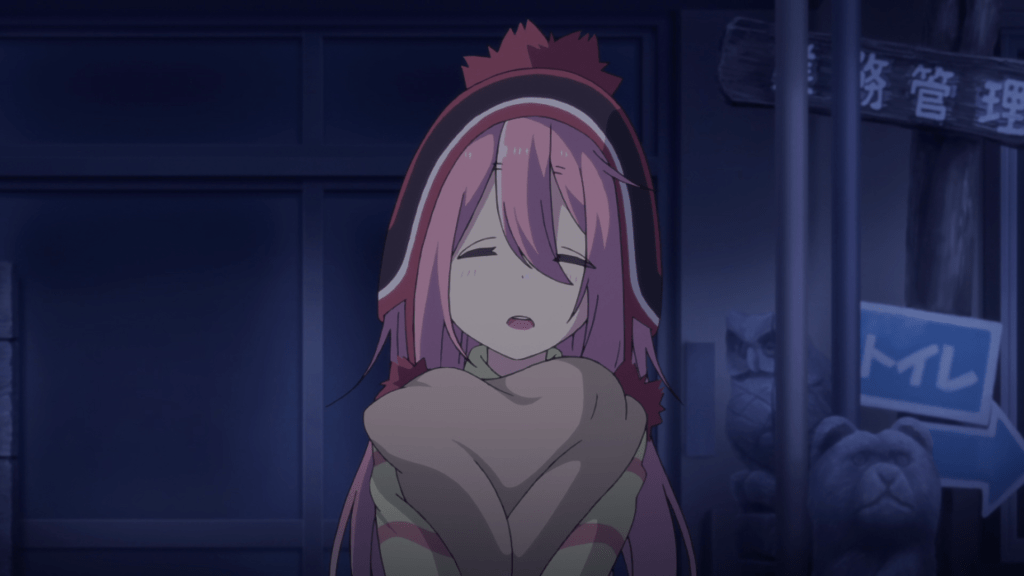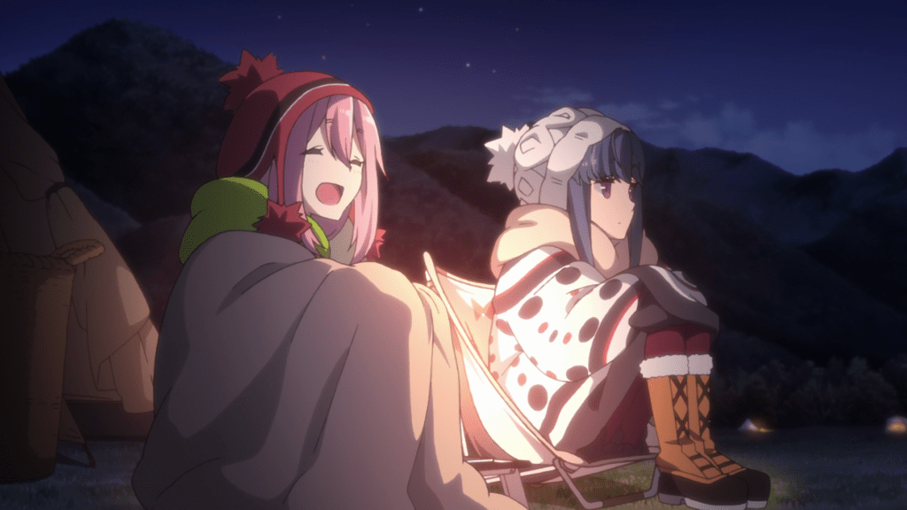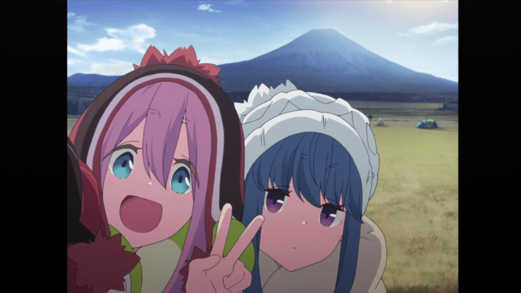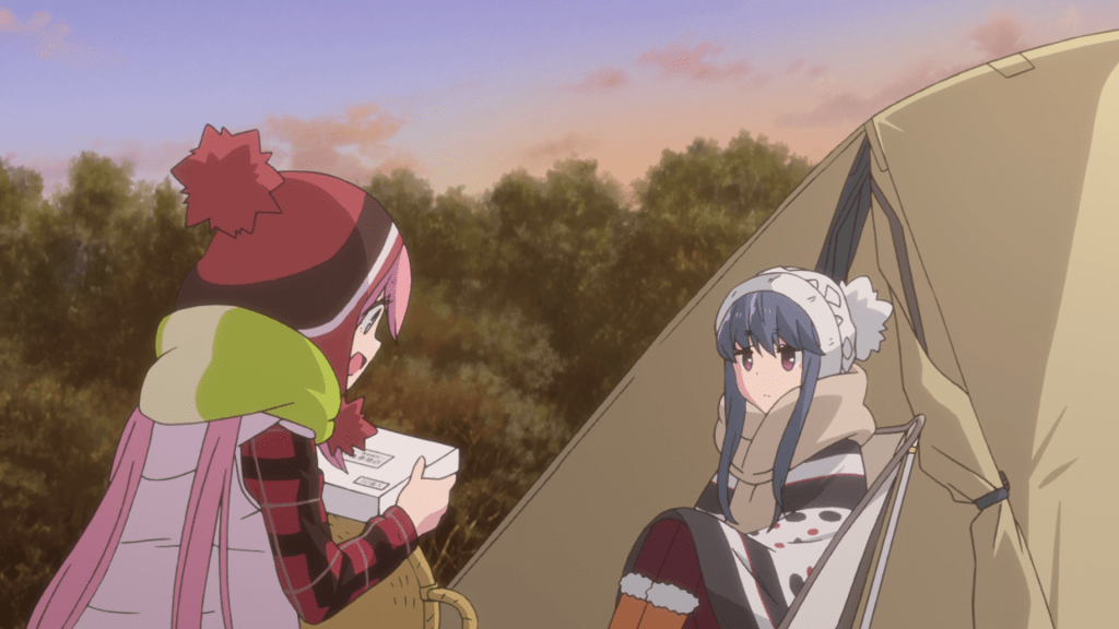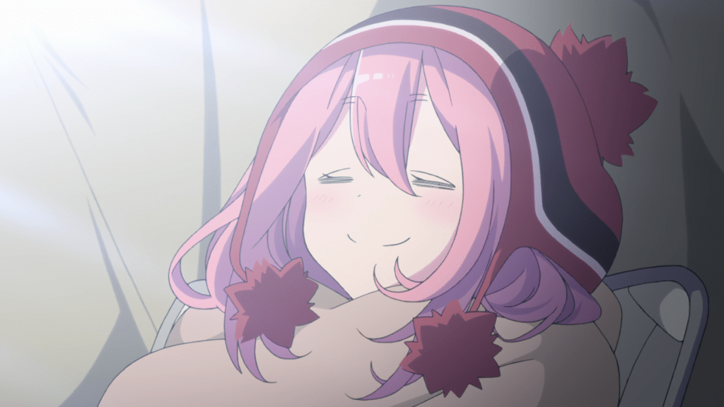 I love that there’s build up to the sunrise. You have Nadeshiko groggily walking back to Rin’s tent with a blanket in tow and the sky gradually getting brighter. Just as she turns to adjust her seat, the sun fully rises, giving both Nadeshiko and the viewer a stunning sight to behold. It’s further enhanced by the music, starting off quietly and gradually getting louder until it blasts you with its sound at just the right moment. The best part of the scene however is that after putting this much effort, Nadeshiko decides it’s too bright outside and goes inside Rin’s tent to sleep some more. It kills the mood so quickly but it’s also so realistic and within Nadeshiko’s character to do that I can’t help but find it funny.