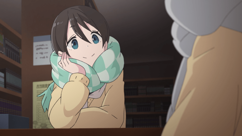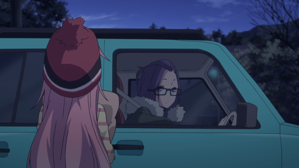 This episode starts off by showing Nadeshiko’s point of view during the second camping trip, rummaging through her family’s belongings for a tent (because getting her own would cost money) before receiving Ena’s text message. After Sakura drives her to the campsite, Nadeshiko explores some of the same places Rin visited in the last episode. It would’ve been easy to not show any of this at all and just continue where the second episode left off but I actually really enjoy this cold opening. There’s something amusing with how casually Nadeshiko passes by all of them after the leisurely tour Rin gave us last episode. Seeing these places again also makes them feel less throwaway and more like a real space that these characters are visiting and temporarily occupying. That’s further backed by the episode cutting to these places a couple more times as the day goes by, giving a great sense of time and breathing more life into the setting.