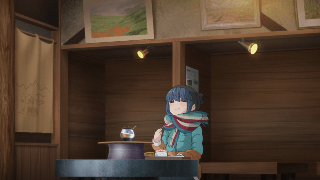 This next episode and the next five are going to be where most of my renewed attention goes to. Thing is, I originally grouped these episodes together; Episodes 4 through 6 one post and Episodes 7 and 9 in another. That largely had to do with a lack of time, I was busy finishing up college, though I did partly do it on purpose to experiment on covering a show more periodically and with a couple episodes at a time (I called it “On Occasion”). It wasn’t a bad idea but ultimately, I went back to covering Laid-Back Camp one episode at a time. Now that I’m re-reviewing this season, I’m taking the opportunity to give these six episodes more expansive blog posts.