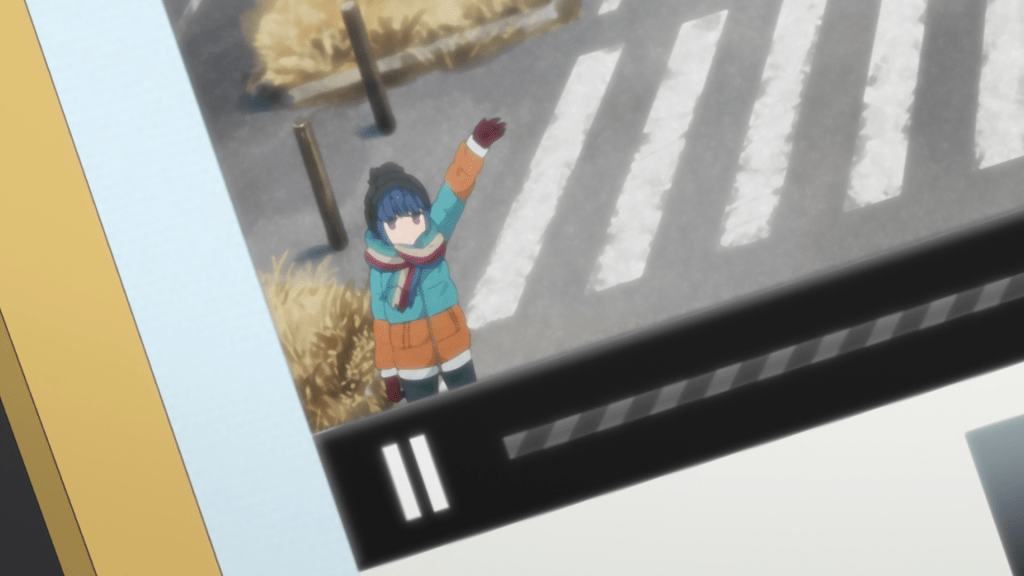 While Rin and Nadeshiko are off on their own trips, they do contact each other throughout the day. They send each other pictures with some accompanying messages (I haven’t mentioned this yet but I love the characters’ chibi portraits on their phones). At the end of the episode, Rin gets a bit clever with her message by waving at a live camera on the street and sending Nadeshiko a link to the stream. There’s also a moment where Rin contemplates on getting a souvenir to Nadeshiko, which goes to show how much she values their friendship. It all gives the sense that these two are still connected in spite of them doing separate things. Keep that in mind as that’s something that will come into play more in the next episode.