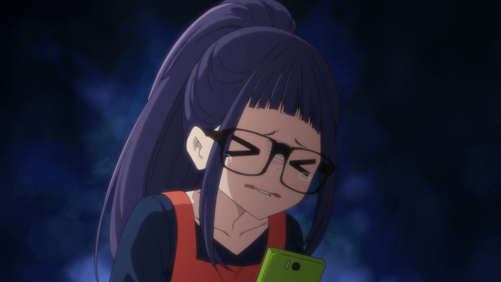 The rest of this episode is mostly the show checking up on its cast. Everyone is working part-time right now so that they can save up for some better camping gear. Even Ena is eyeing some stuff as, despite her commitment to the Going Home club, she’s grown more interested in camping after the Christmas trip. A hilarious conversation soon arises when Chiaki (Sayuri Hara) learns in the group chat that all of her friends have more days off for New Year’s than her (of course Rin has the longest break) as well as fancier plans for the holiday, leaving the poor girl depressed. The only way things could get worse is if it’s revealed that she makes the least amount of money out of the gang. That all five main characters appear to be part of the same group chat is interesting, especially with Rin as she was only acquainted with Chiaki and Aoi (Aki Toyosaki) not too long ago. It really goes to show how close everyone has become with one another after one trip. Now, if only Rin and Ena would join the Outdoor Activities Club. I say that but I kind of hope the Outclub is forever stuck in that storage closet.