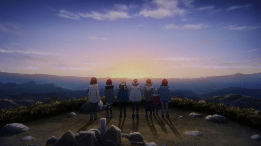 Despite the hiccups, the trip does work out in the end. A nice touch is how Rin’s parents indirectly help her with the trip. Her dad (Takahiro Sakurai) secretly asks the man in charge of the campsite to stop by and help if asked while her mom (Kaori Mizuhashi) sneaks in a cup ramen in her backpack in case the curry rice goes awry. The trip is far from perfect but that’s to be expected and Rin still appreciates the experience she gains from it. Plus, none of the setbacks prevent her from enjoying the view. Even though Laid-Back Camp has technically used that specific vista before, it remains as stunning as it once was.