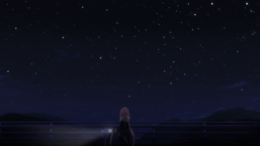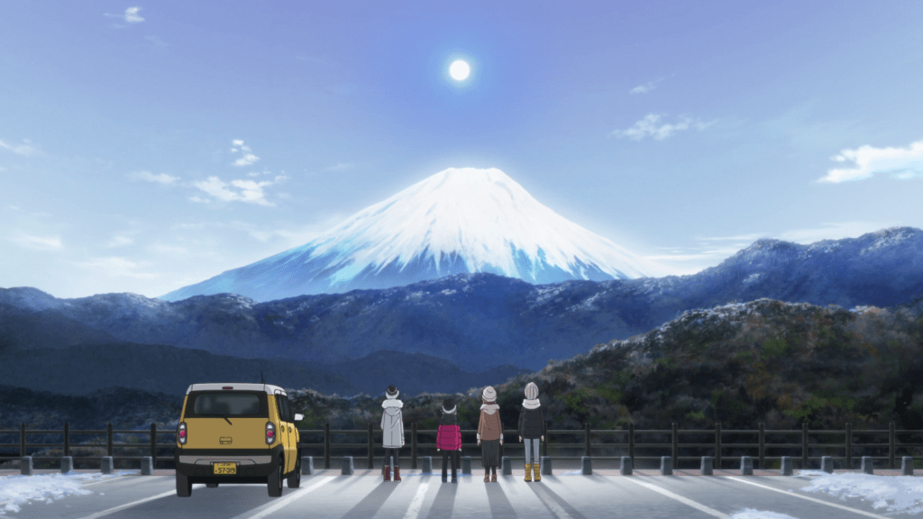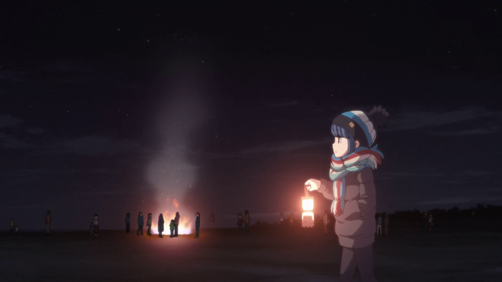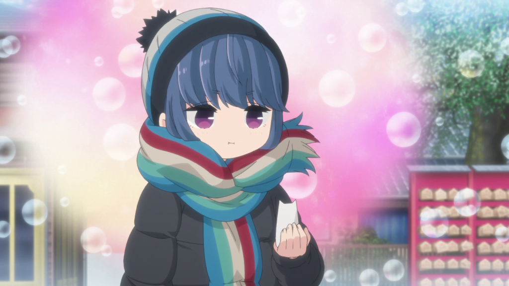 While the episode mainly focuses on Rin, a good amount of time is dedicated to the other characters. Chiaki, Aoi, Aoi’s sister Akari (Risae Matsuda), and Toba-sensei (Shizuka Itou) carpool to see the first sunrise of the year at two locations. Ena sleeps in until noon and that’s exactly how I imagined she’d celebrate New Year’s. The odd one out is Nadeshiko as she’s actually working for the day. That’s kind of sad to see but working during New Year’s is presumably her decision and it does say a good deal about how serious she is about saving up for new gear. That lamp will be hers! Regardless, it’s nice seeing what everyone is up to, especially by the time the first sunrise of the year occurs. It reminds me of the ending of Season 1’s fifth episode. While everybody is in separate locations, they still experience the same thing in parallel (well, except for Ena but again, it fits that she sleeps in). Also, this show is just the best at depicting sunrises and sunsets. It still hasn’t gotten old.