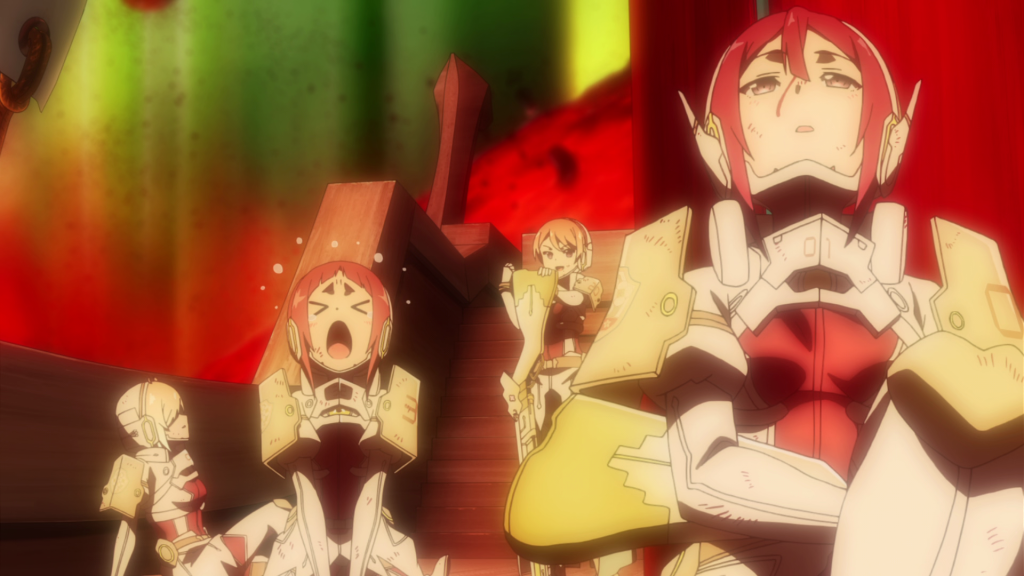 My biggest problem with this episode is that I don’t really connect with the Sentinels. Between flashing back to the candidates’ training to establishing the Sentinels to showing their first battle, this episode is forced to skim through so much characterization. With only four of them named, we’re definitely not going to learn about each and every one of them. Yumiko and Suzume currently boil down to quips and there’s hardly anything to say about Aya and Shizuku. I did enjoy the one-sided rivalry between Mebuki and Yumiko but the team overall doesn’t have the group chemistry that past YuYuYu teams had.