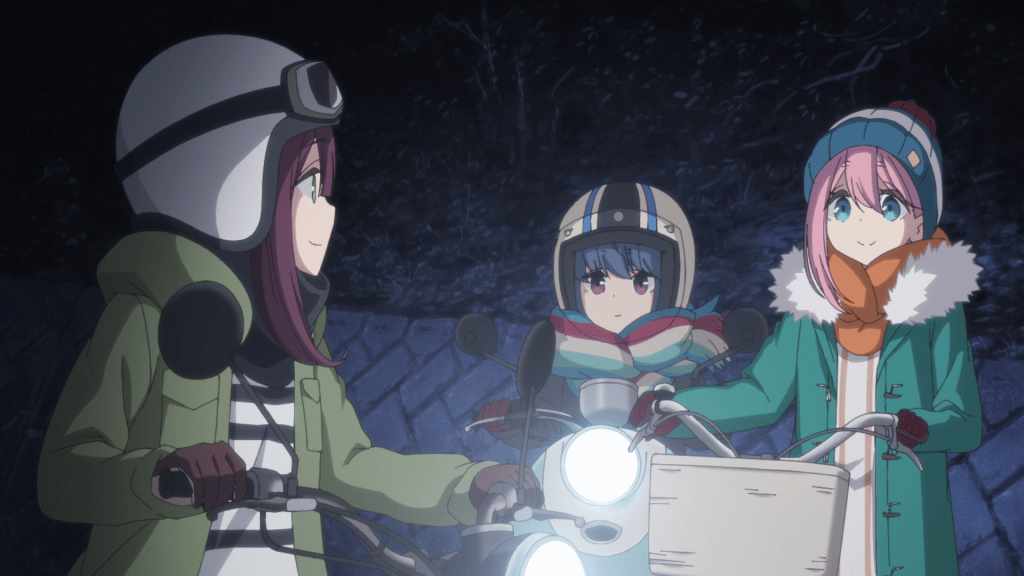 Along the way, the show sets up Ayano possibly becoming a fellow camper. Understandably, she initially finds the idea of winter camping pretty niche though the more she chats with Nadeshiko and Rin about it, the more she gets the appeal. It’s not explicitly confirmed that she’ll give camping a try but I hope to see Ayano tag along for a trip. It could be a lot of fun seeing her meet Chiaki, Aoi, and Ena and seeing that she has a moped makes me really want to see her bike to places with Rin. For now, Ayano says that she’ll come over to Yamanashi someday and I’d be shocked if that doesn’t happen before Season 2 ends.