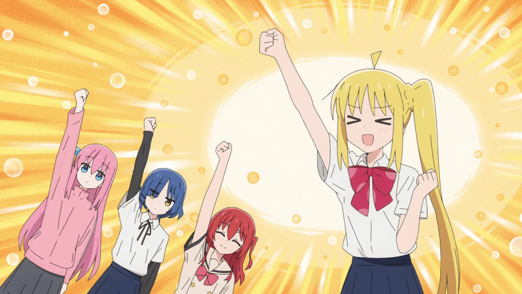 So, at the time of writing this episode review, BOCCHI THE ROCK! has finished airing. Having joined the bandwagon really late, I wasn’t terribly confident I could catch up in time for the finale. Still, it would’ve been nice to have been all caught up. Getting these posts out might get a bit complicated with Winter 2023 fast approaching but I still intend on finishing them. Also, even though I haven’t finished the show, I was hoping to see a second season announced when the final episode aired. Alas, that did not happen. Considering the show’s popularity, I’m hopeful one will get greenlit but then again, I’ve felt that way for a lot of other shows that never got one (I’m still dreaming of Monthly Girls’ Nozaki-kun Season 2 for example).