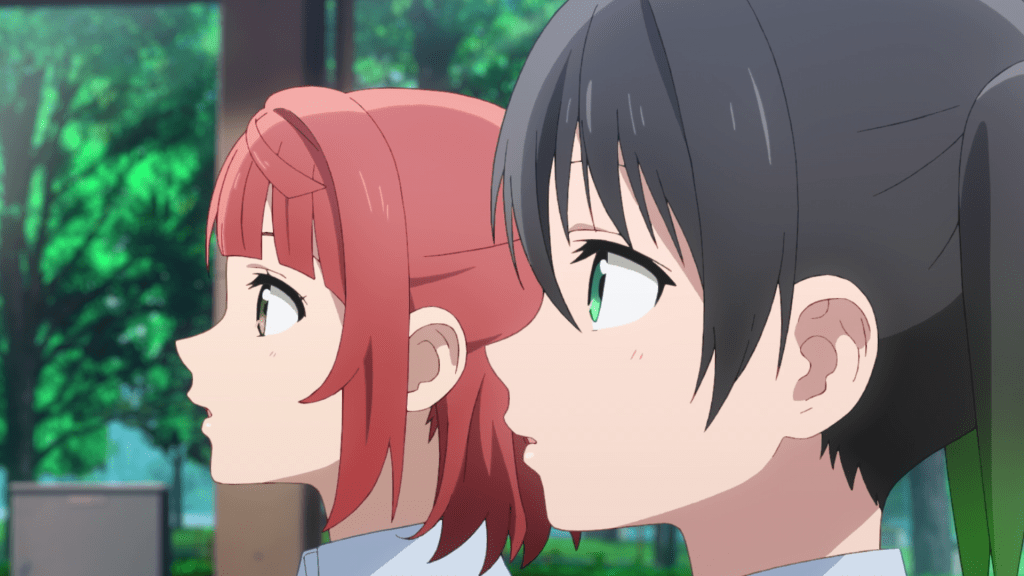 I worry Yu might be too much of a blank slate but so far, the show is doing a good job making her part of the story. She’s motivated and compassionate while also having a bit of a goofy side to her. More importantly, she seems to be an impetus to the story as she’s the one who searches for Nijigasaki’s idol club and inadvertently motivates Ayumu to pursue becoming a school idol. I also like the chemistry between Yu and Ayumu; you really buy these two as longtime friends and the former contrasts nicely with the latter’s more timid personality.