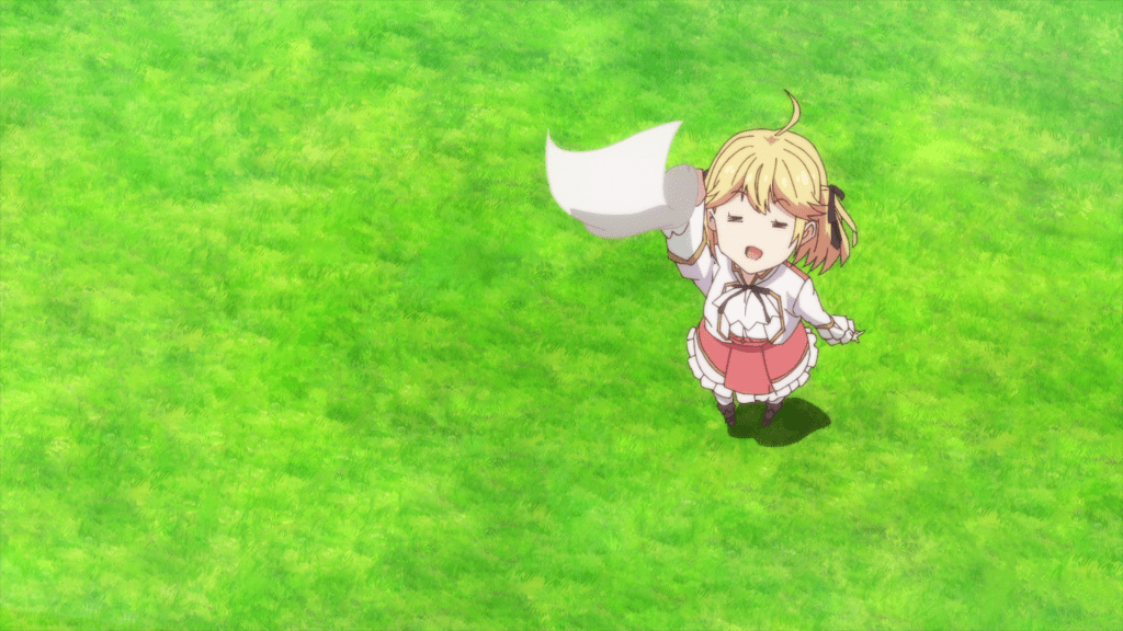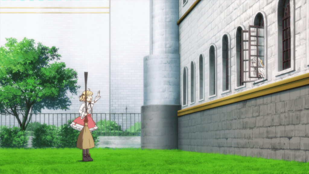 Over at Anis’s place, the princess has Euphie try some of her gadgets, both to lighten to mood and to break the ice between them. The first is Anis’s lightsaber mana-powered blade. Euphie being able to power the blade makes sense but it does make me wonder then how Anis is able to use it when she has no magical affinity. After that, Anis has Euphie try the broomstick. It is really funny how Euphie has Anis swear that she’ll hold onto her, only for Anis to go against her word. It’s like a child talking to their parent when they try a bicycle without training wheels. At the end of the episode, Anis creates Arc-en-Ciel, a magic sword specifically designed for Euphie. As Anis points out, the name means “rainbow”. I can’t help but think it’s a little on the nose. Like, Anis explains she named the sword that because it allows Euphie to channel different elements but given that Anis is a lesbian, it’s hard not to think that the name has a double meaning to it.
