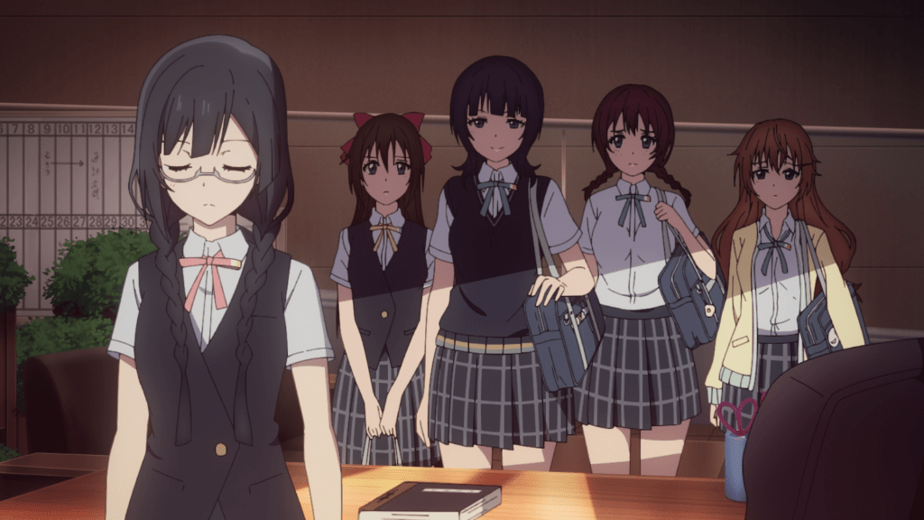 On the flipside, Setsuna is really growing on me. I really like the double life aspect to her character, alternating between the serious student council president and the more excitable school idol. Both halves seem at odds at each other but one trait they both seem to share is Setsuna’s diligence and passion. Part of me does wish the show leaned a bit more into that. There’s hints that Setsuna uses her idol persona to be less uptight and more mischievous than she could as the student council president but it’s surface level stuff at best. That said, I’m glad that the show doesn’t use the double life as a crutch to explain her decision to disband the club. It instead sticks strictly to what’s been implied before. She feels she was contributing to a toxic environment within the club and decided that removing herself out of the equation would be the best way for her peers to succeed.