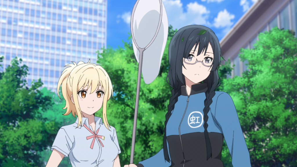 Back to the episode at hand, things sure are moving along in Love Live! Nijigasaki High School Idol Club. For starters, the club doubles its ranks as the rest of the former members — Emma, Shizuku Osaka (Kaori Maeda), and Kanata Konoe (Akari Kitou) — rejoin and Setsuna gives the okay for the club’s revival. It’s strange as Love Live! historically takes its time getting the gang altogether. I’m sure the show will give the characters their dues, I’m particularly curious about Shizuku’s juggling between being a school idol and an actor, but it does feel a bit rushed to me how they just rejoin the club and become aquatinted with Yu and Ayumu with little to no fanfare. At least Karin doesn’t join immediately. That would’ve gone too far for me.