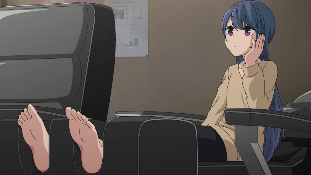 After the ED, we’re treated with another installment of “Inu Inu Inko-san” so that this episode isn’t devoid of Chiaki, Aoi, and Ena. While I should take the canonicity of this scene with a grain of salt, it is interesting to see Ena tagging along at an Outclub meeting. The three girls discuss Caribou, the mascot character of the store of the same name. We previously saw each of them give the guy a hug during their trip to Lake Yamanaka. Chiaki mentions that you can actually buy the statue which excites Aoi, only for the poor girl to get dejected when she learns how expensive it is. I wouldn’t have it any other way. I am however a little surprised that Aoi is the one who wants to buy it, considering that Chiaki is the one who hugged the mascot twice.