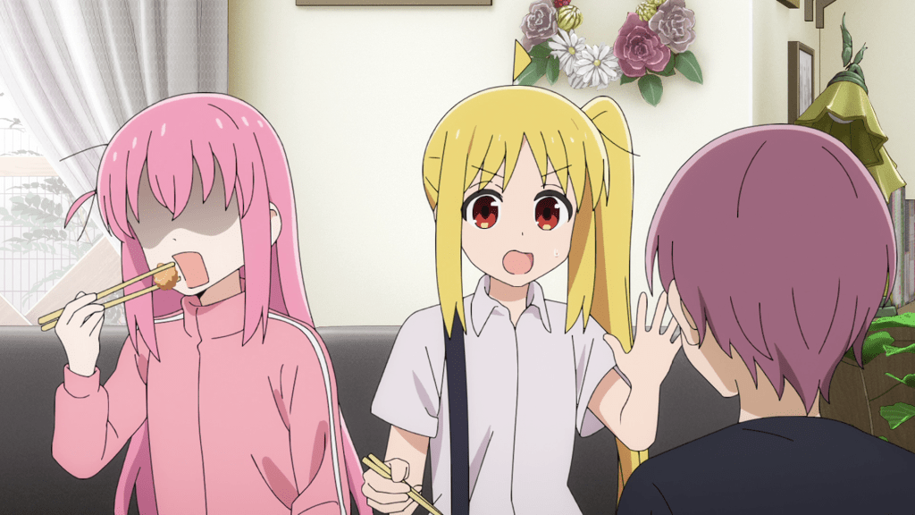 As mentioned earlier, Nijika and Kita meet Bocchi’s family for the first time. This amusingly irks Bocchi a bit as everyone is more sociable than her and she struggles to be part of the conversation. She’s able to able to bribe Futari away with an ice pop though there’s not much she can do with her parents. I laughed pretty hard when Bocchi’s parents admitted that they thought Bocchi’s friends don’t exist or if they do, they’re a part of one of those rental services in Japan. Even with the group photo, they thought it might’ve been photoshopped. It makes sense that they’d be skeptical but damn, talk about savage.