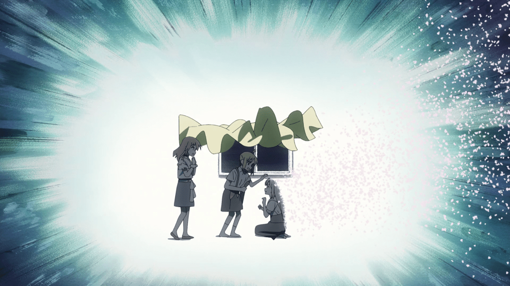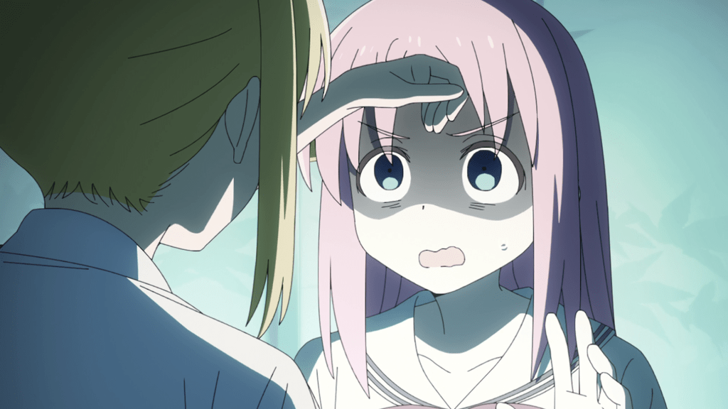 The funniest gag comes near the end of the episode where Nijika and Kita convince Bocchi to try on some of the clothes she has lying around in her wardrobe. While falling in love with fawning over Bocchi, Nijika tries to brush Bocchi’s hair. Overwhelmed from having her face exposed, Bocchi dies and crumbles into ashes. No really, that’s actually what happens to her. Even Nijika and Kita both acknowledge what just happened. Just when you think things couldn’t get weirder, Bocchi’s spirit then curses Nijika and Kita, causing them to slowly die on the floor and become just as depressed and self-loathing as their deceased friend. After that, the show cuts to the next day where the three girls are perfectly fine. They don’t talk about what happened and the only implication as to how they’re recovered is that Bocchi’s parents were somehow able to cure them. I still have five more episodes to watch and this technically isn’t the first time BOCCHI THE ROCK completely disregards its internal logic. Be that as it may, this scene is definitely a top candidate as the show’s most insane scene. What a wild ride this scene is.