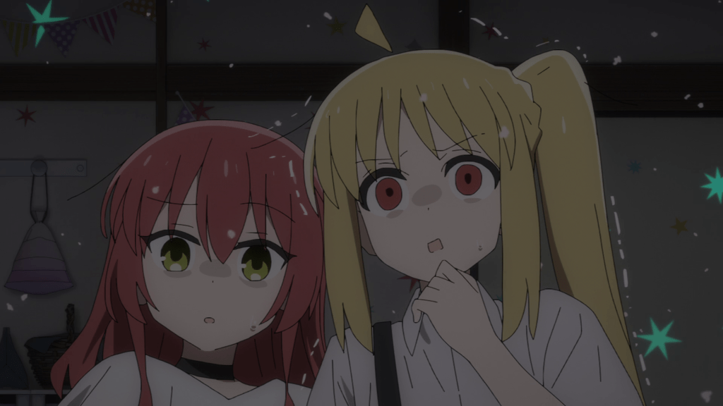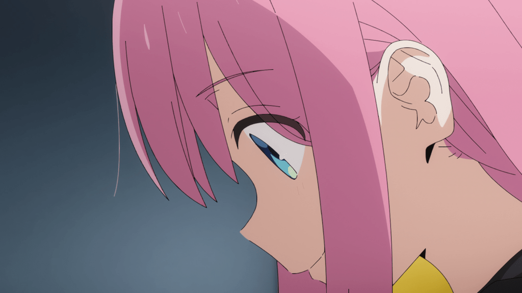 This episode is the “calm before the storm” as it takes place right before Kessoku Band’s concert performance (their first one with everyone present). While I mostly meant that figuratively, I suppose I also meant that literally given what we find out at the end of the episode. I guess I also mean it ironically because with Bocchi, “calm” isn’t exactly the first adjective to come to mind.