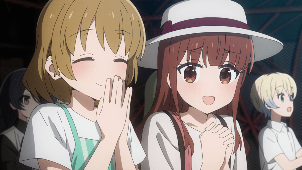 Nijika finishes her heart-to-heart with Bocchi by saying that she hopes to see more of her friend’s “rock” or she puts it, “Bocchi the Rock”. And yes, this is indeed a title drop. Title drops are some of the easiest dialogue to poke fun at. In the case of this particular one, the very wording of “Bocchi the Rock” is just odd. That said, I think this title drop does work. It sounds like a title Nijika would bestow upon Bocchi and in the context of this episode’s ending, it conveys the importance and interest Nijika has in her friend. I also feel inclined to say that the show has earned the right to title drop. Having been so darn good these past eight episodes, I think the show gets a pass for having Nijika say the thing.