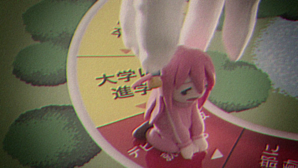 Another bit that I enjoy is when Bocchi overhear what I assume to be a salaryman discussing his life’s woes with his co-worker. The “camera” stays on these two long enough for you to briefly think that you stumbled upon a different anime. Hell, the men don’t even look like any of the male extras we’ve seen in the show. The conversation the two men causes Bocchi to ponder about her future and how likely she’ll suck at it. Boy do I relate with this. There’s a couple of deep cuts here. One is Bocchi imagining her future through “the board game of “The Game of Life” and the show actually reuses her model from the stop motion scene in Episode 7. A second one that comes to mind is the ending of this imagined scenario, where Bocchi spends the rest of her days as a drunk NEET. This is actually something Bocchi pictured in Episode 6, prompted when Kikuri recommends that she drink booze when she’s of age. Both of these are a really neat and amusing bit of continuity.