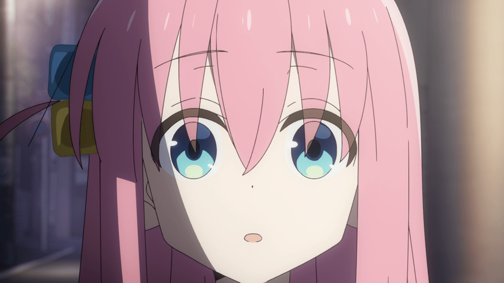 Like with “Guitar, Loneliness, and Blue Planet”, BOCCHI just plays an abridged edit of “That Band”. I’m only harping on this because I frankly do prefer it when music anime plays full songs. That said, these songs are proving to be quite good even in its abridged form. I’m again going off of Crunchyroll’s translation but from what I can tell, “That Band” revolves around the effects one particular band’s music has on the speaker. The band’s music resonates with the speaker and likewise, the speaker wants to undisturbed when they listen to it and be completely absorbed in it. Assuming I’m reading them correctly, these lyrics are awfully meta for this scene. By playing this song, Kessoku Band is essentially telling the audience that they hope their music will impact them in some way. Even the name of the song is a cheeky; “That Band” could very well refer to Kessoku. Something that I also notice about the song is that its instrumental are very similar to what Bocchi and Kikuri played on the street in Episode 6. I find that cute as Kikuri called the instrumental one of Kessoku’s songs and Bocchi’s fans asked her if she’d play the song. Maybe the street performance wasn’t as improvisational as I thought. Either that or it’s a fun coincidence the show fabricated.