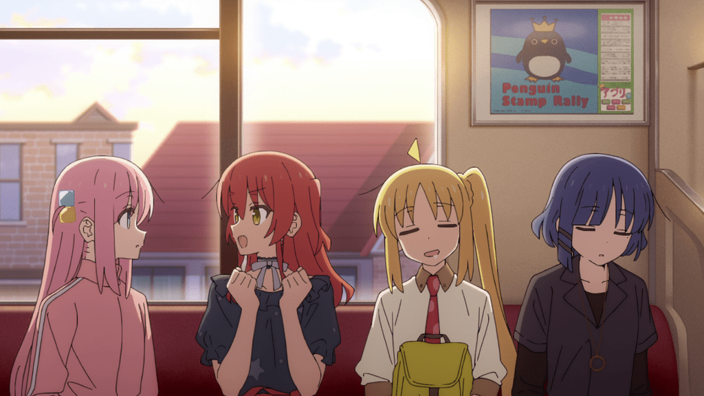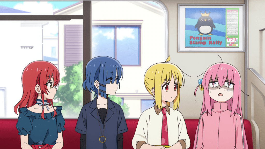 While taking the train to Enoshima, there’s a fun moment where Nijika, Ryo, and Kita talk about school (Bocchi is still too depressed to converse with everyone). Kita points out that Nijika and Ryo go to a prestigious school and find out that neither girl is an ace student. That Ryo is actually dumb is something we and most of the characters in the show has known for a long time but this is the first time Kita is face to face with this reality. Needless to say, this conflicts with her image of Ryo as the coolest senpai ever. I doubt Kita will stop simping from this point forward but it would be funny if this heartbreak of hers is here to say. Well, if Ryo doesn’t work out for her, maybe she’ll hook up with Bocchi instead. That would explain all the Bocchi x Kita fanart I keep seeing on Twitter (I’m convinced this is the show’s most popular ship).