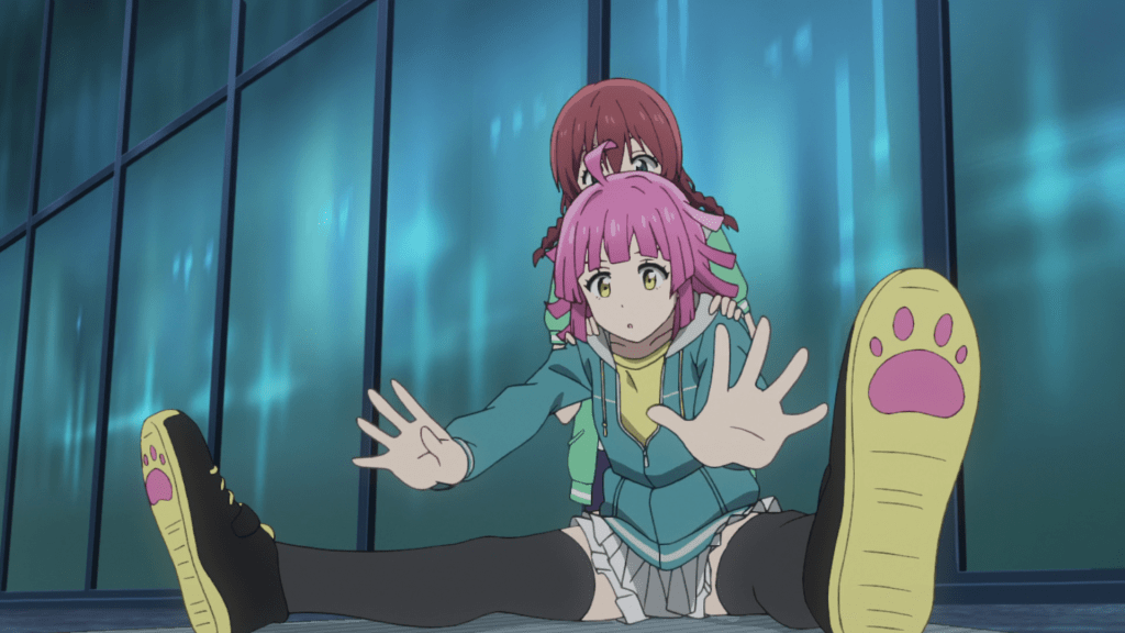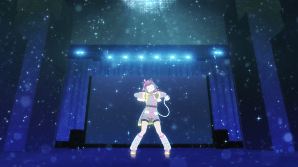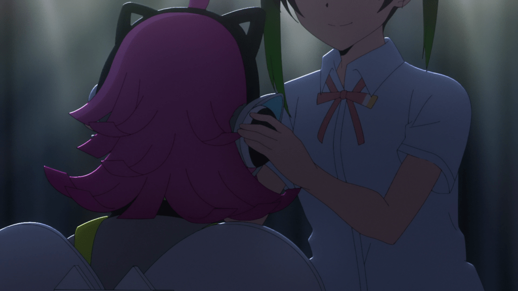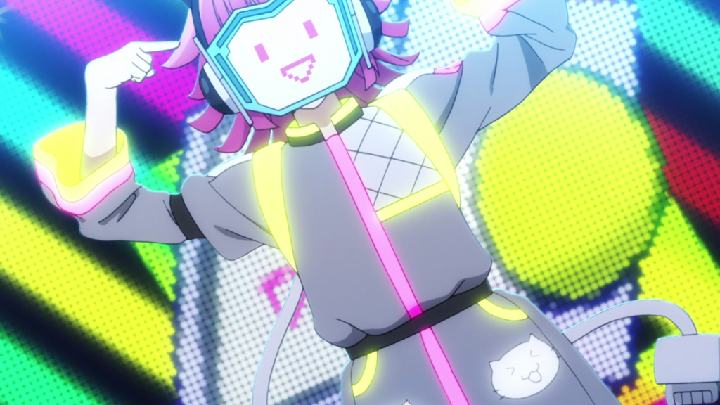 As per usual, the performance scene is solid. The techno pop instrumentals, the neon aesthetic, and Rina’s energetic dancing compliments the Rina-chan Board in conveying what the character feels and truly wants to project. I like the occasional video game and computer lingo in the song’s lyrics; it’s cheeky but it’s a nice nod to Rina’s technological expertise and it plays into the song’s theme of connecting with other people. At this point, the occasional cuts to the performer in a normal setting is par for the course but they do stand out more in this case as it Rina appears emotionless and it’s the music that informs you of her actual mood in these moments. It’s a very cute contrast.