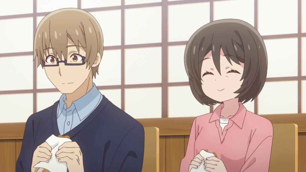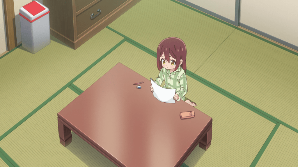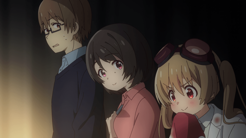 The second reason is that these storylines aren’t half-bad. The culture festival plot is just fluff but it’s nevertheless charming. There’s a fun dynamic between the three high schoolers where Hiyori and Koi more or less serve as the straight men while Koharu is off doing silly stuff. I like how Hiyori and Koi runs the typical café while Koharu creates an exhibit filled with replicas of aquatic parasites (and to her chagrin, it performs way worse than Hiyori and Koi’s). By far, the strongest plot of the two is the one with Futaba. Much like how Bocchi finds strength through her friends, Futaba musters the courage to do the recital after seeing the similarly timid Hiyori try new things during their fishing session. It ties into BOCCHI‘s main story thematically and it’s a nice little plot in its own right. There’s some good humor here as well such. In particular, Futaba doesn’t explicitly share her dilemma with Hiyori so every time she thanks her, the latter has no clue what’s going on with the younger girl. Also funny is how the two characters’ connection causes some jealousy in one of Futaba’s friends, Aiko Ninomiya (Honoka Inoue). I think someone is giving Kita’s Ryo obsession a run for its money.