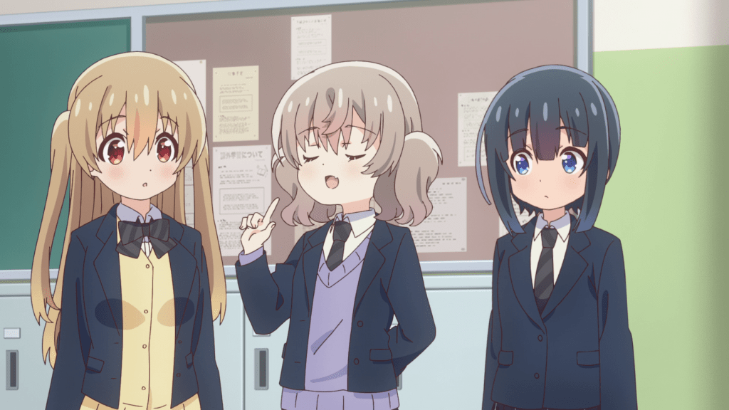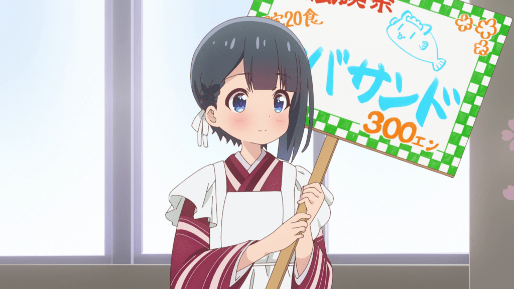 Oddly enough, most of this episode doesn’t actually revolve around Kessoku Band. Rather, this episode spends a lot of time following the new girls, Hiyori and Koharu, as they help their classes with planning and running venues for the culture festival with their friend Koi Yoshinaga (Tomomi Mineuchi). The episode also throws in a third storyline where a little girl named Futaba Fukumoto (Natsumi Murakami) is anxious about sharing her writing piece at an upcoming school assembly. At some point, Hiyori invites Futaba to go fishing. Apparently, these two know each other and all four new characters like to go fishing. I’m not entirely sure. It feels like these characters all have nine episodes worth of history together and I missed all of that.