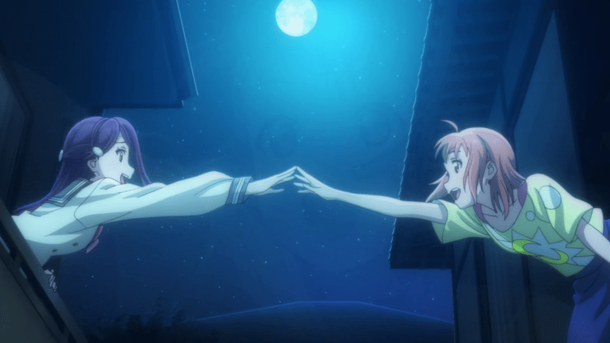 It’s a good thing that Chika lives right next door to Riko as she catches Riko playing “Yume no Tobira” and asks Riko once again to join the club. While Chika certainly doesn’t know when to quit, she does want Riko to be happy and she does raise a good point. Perhaps what Riko needs is a break from the piano (outside of idol work of course but that’s besides the point) and if being a school idol will be fun for her, then she should give it a whirl. Realizing that Chika is right, Riko takes her up on her offer. The final bit where Chika and Riko reach out and touch hands is a little over the top. Maybe I’m being a worrywart but that’s such a risky move on their part; I was afraid the two of them were going to tip over and fall to the ground. That said, it does make a nice image to end the episode on. It showcases the newfound unity between these two and that they’re willing to persevere through any obstacles together.