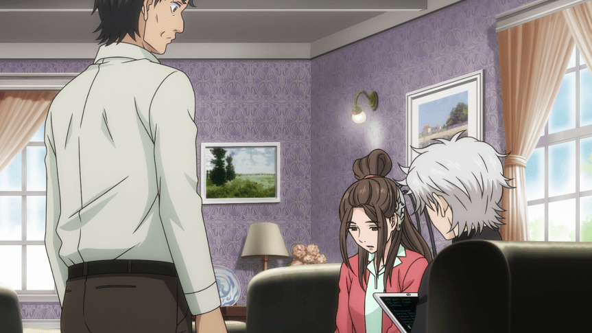 The Gene of AI takes place in a future where humans live alongside robotic “humanoids”. On the surface, humanoids are virtually indistinguishable from humans save for their pupils taking on the shape of a horizontal oval. Humanoids have the ability to digitally back up their personalities, though this practice has been made illegal. The show centers around Hikaru Sudo (Takeo Otsuka), a human doctor who runs a legitimate clinic to treat humanoids but also assists those in more legally grey situations if the price is right. In the first episode, he meets a family comprised of two humanoid parents and one human adopted daughter. The humanoid mother is suffering from a computer virus she caught after she and her husband created a backup of her personality one week earlier.