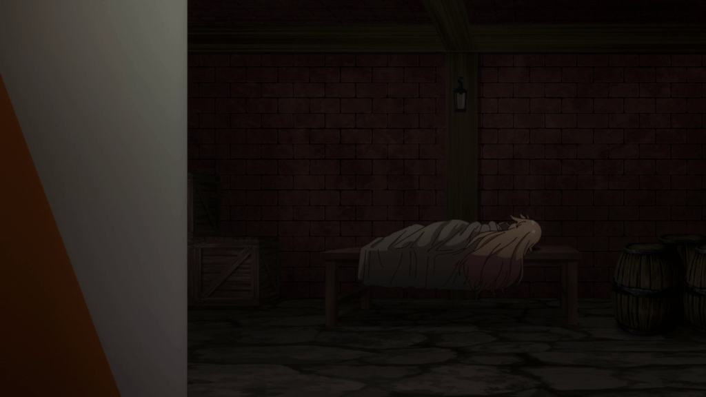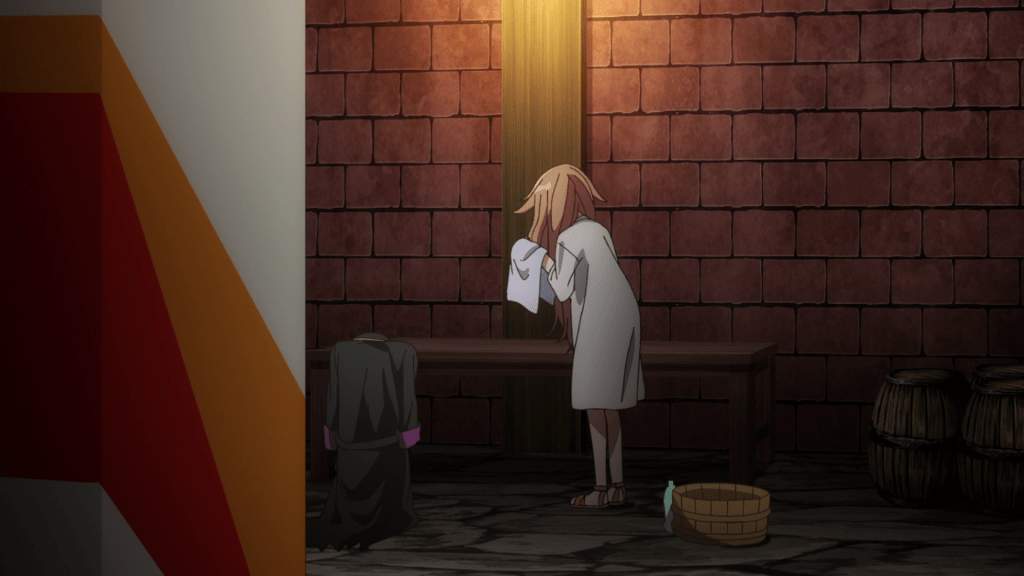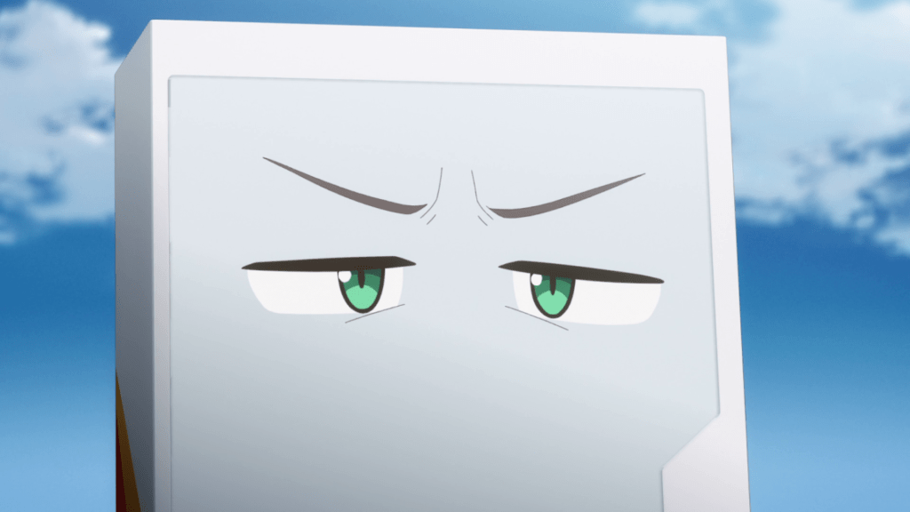 I like Hulemy. She’s got a feisty attitude, often talking back to her captors and going against their agenda despite her situation. While Hulemy doesn’t reveal anything new about Boxxo, this episode does highlight her intelligence. With some notes and her own intuition, she quickly figures out how Boxxo communicates and functions. Before even meeting Boxxo, Hulemy already theorized the possibility of inanimate objects having human souls and correctly deduces that Boxxo is living proof of that theory. About the only thing Hulemy doesn’t figure out is the fact that Boxxo’s soul came from another world because that’s just preposterous (though give her some time, she might come to that conclusion).