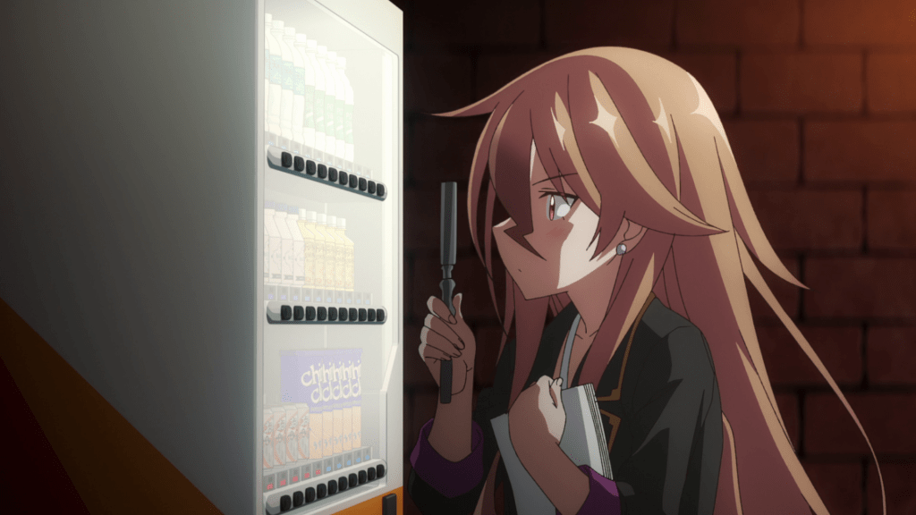 To this episode’s credit, Boxxo and Hulemy aren’t just sitting around during the big raid. At some point, one of the thieves’ explosives go off, forcing Boxxo to erect a barrier to protect Hulemy. The pair manages to obtain the thieves’ loot from the rubble, allowing Hulemy to keep Boxxo’s barrier up and take revenge on the thieves. Because they’re trapped under the rubble however, Hulemy starts to run out of air, leading to Boxxoto assume the form of an oxygen vending machine (look it up). That’s an interesting dilemma to Boxxo’s barrier ability. He’s a vending machine and he normally protects people out in the open so air wouldn’t normally be an issue. I have to hand it to the writing in offering a situation where the barrier isn’t the perfect form of defense. I’ll admit that the oxygen machine is Boxxo pulling something out of his non-existent ass though I appreciate that this show is drawing off of the vast array of vending machines found in Japan.