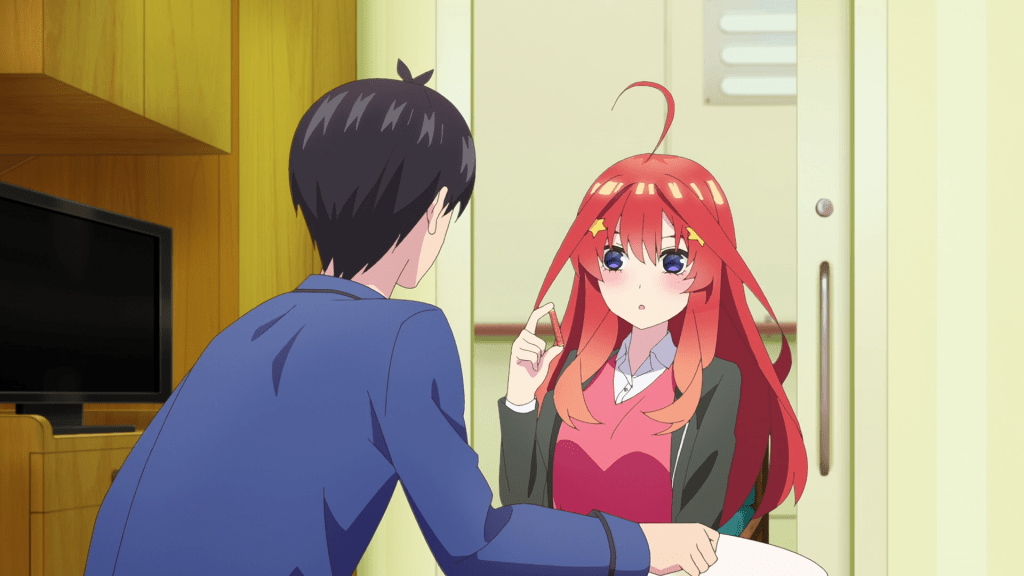 I wasn’t expecting that to materialize within one new episode but yeah, I remain invested in my current Top 2. Miku is just so unbelievably cute with her forwardness towards Fuutarou in contrast to her quiet personality. Ichika especially shines in this episode; I really enjoyed the playfulness she expresses during the hospital visit and Futaro’s return to serving as the sisters’ tutor. For now, Yotsuba and Nino remain about the same for me. I suppose Itsuki is starting to emerge in importance but given Season 1, that’s not hard for her to do.