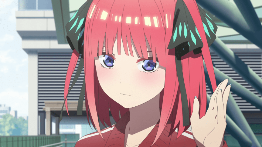 Of course, it wouldn’t be character development without a haircut to go along with it! In all seriousness, Nino cutting her hair short is a pretty good visual for her character development. She mentioned in the last episode that she keeps her hair long because all the quintuplets used to do that. The old hairdo was her holding onto the past and by cutting, she finally lets the past go and accepts the reality of the present. If nothing else, I must admit that she’s rocking the short hair (but then again, character design is the least of Nino’s problems).