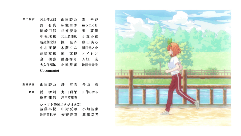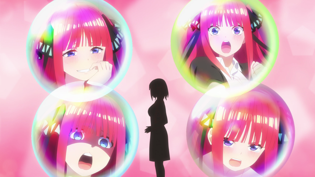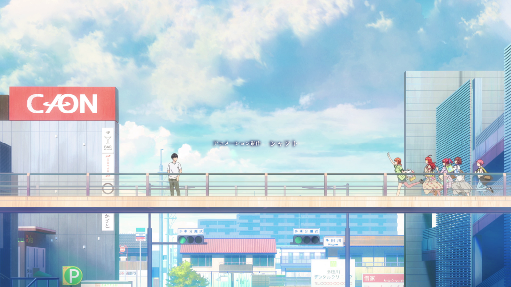 We have yet another change in studios. Tezuka Productions did Season 1. Bibury Animation Studios did Season 2 and the movie. For the special however, we have Shaft at the helm. Apparently, Shaft helped Tezuka Productions for an episode of Season 1 so the producers probably had them up for consideration since then. The new art style isn’t as drastic as it was with Season 2 in comparison to Season 1 but you can tell that a different studio worked on this and Shaft’s usual flairs do show up here and there. Honestly, given Shaft’s pedigree, the special is probably the best Quintessential Quintuplets has ever looked, more so than the stinking movie finale. I’m not sure how I feel about that.