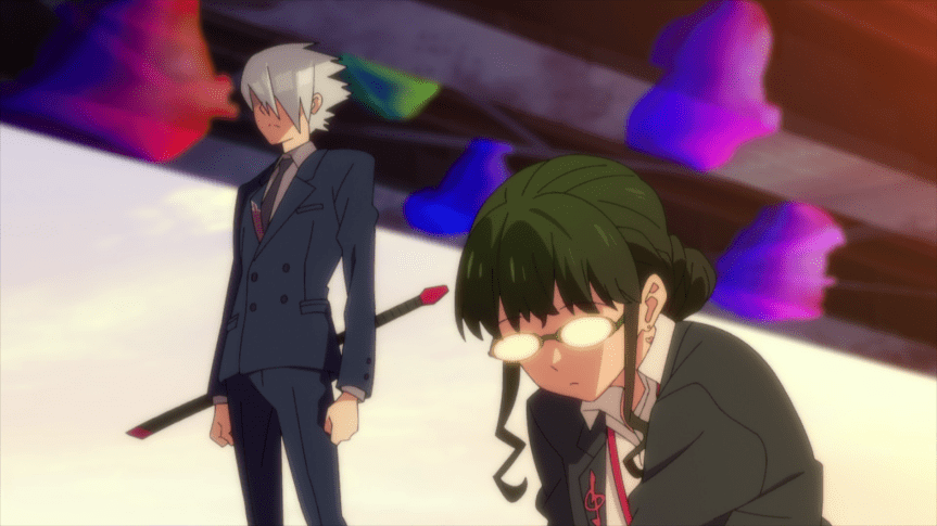 We see a little bit of the usual plot threads before Gauma calls his team. Last episode, Yume found out about another person connected to Kano named Futaba. Unfortunately, Futaba has moved out of his last known residence so for this episode, Yume is at a dead end. Meanwhile, Koyomi is still thinking about Inamoto despite cutting ties with her. In a new flashback, we see Inamoto showing Koyomi a bag of money she found and asking him to run away with her. Koyomi instead runs off in fear, making the moment a massive what-if in his life. That helps explain why Koyomi is so hung up on Inamoto but the poor guy really needs to move on.