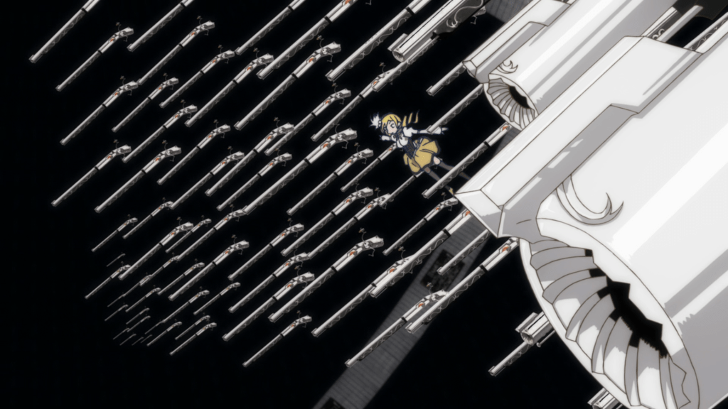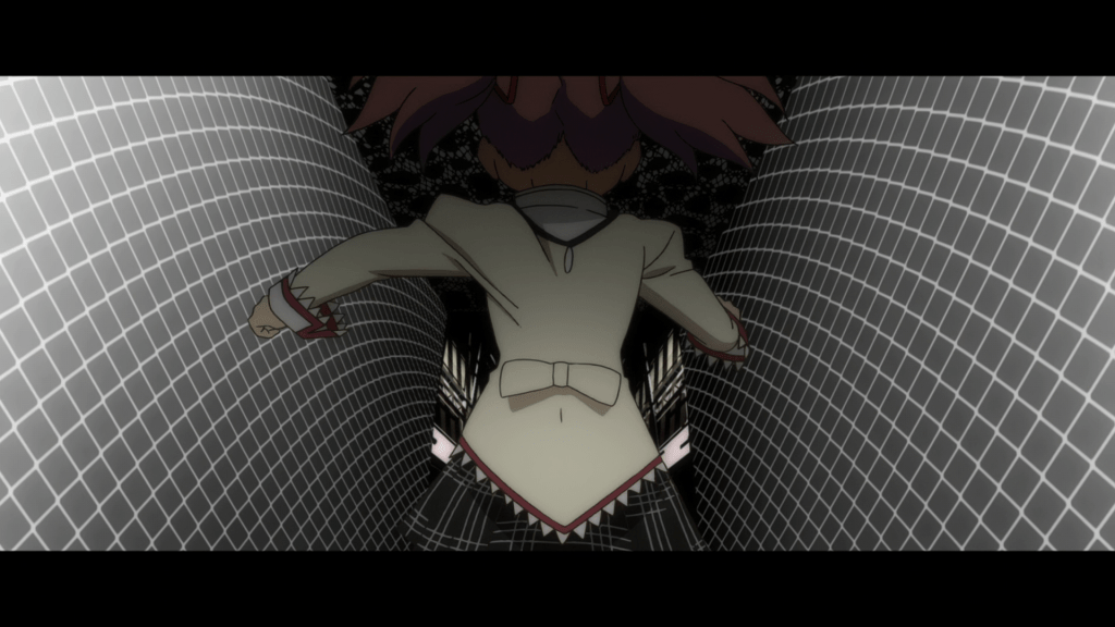 While there’s certainly some interesting developments going on here, I wouldn’t blame a new viewer if they told me that this episode didn’t exactly hook them in. It is purely set up, both in terms of narrative and characterization, and it is all very unassuming. Really, the thing that stands out in this episode is the presentation, which is no surprise given that this is studio Shaft we’re talking about. Shaft can get needlessly stylistic at times. This is especially the case with the set designs where Madoka’s house has a number of odd looking items and the school she  attends looks like the most advanced and fanciest middle school in existence. Even so, it’s hard to deny that the style does work at times, most notably during the action scene at the end with the eerie, paper cut-out-esque aesthetic that clashes with the general art style of the show. I suppose the show’s age is apparent nowadays but I think it still holds up for the most part. The music by Yuki Kajiura is also worth mentioning. I forgot how good some of the tracks are, such as the theme that plays when Mami starts fighting, with its vocal chants and its strange yet harmonious mix of classical and techno beats.