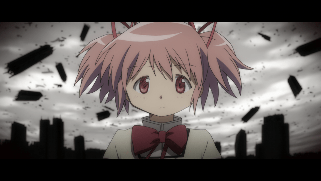 The original Puella Magi Madoka Magica was a very formative anime for me. I remember watching this for the first time at my high school anime club, during the final term of my freshman year (and about a month or two after the show finished airing). One of the senior members played the first three episodes. One of the senior members played the first three episodes; he was the only one who had already seen it and he just let the show speak for itself. And boy did it do just that. I attended every club meeting after to watch more. I recall the club stopping at Episode 9 due to finals coming up but I also just had to know how the story ends so I finished the show the following weekend. It was an enthralling, larger than life experience that left my 14 year old self speechless and it was one of the shows that cemented my interest in anime. I’ve seen a number of magical girl anime that have come out since Madoka aired. Some are good, others not so much, but none have captured that exact spark I felt with Madoka and that show remains at the top for me.