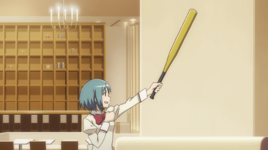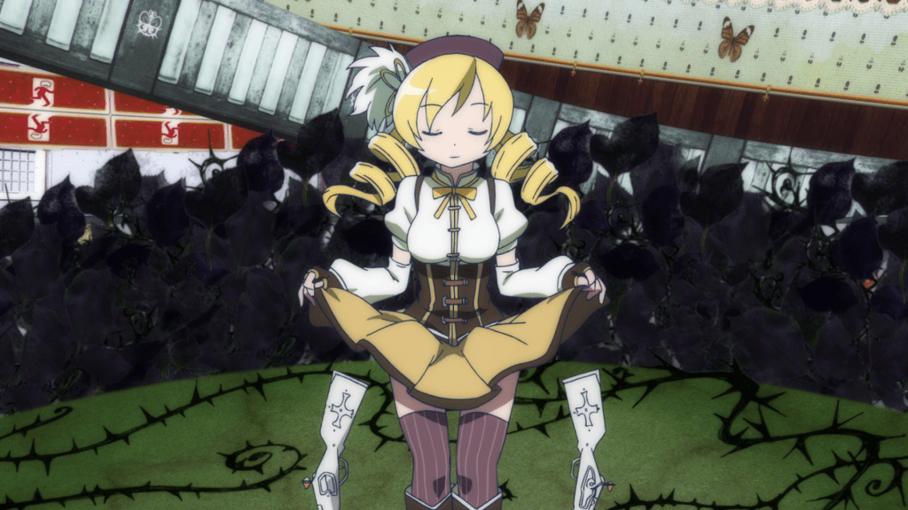 I forgot how badass Mami is in this series. You absolutely buy into the fact that she’s been doing this magical girl business for quite some time. When she sees someone controlled by the Witch of the week, she quickly transforms and comes to the rescue. She lends some of her magic to augment a baseball bat Sayaka brings to protect herself and Madoka and is completely confident in her abilities that those two will be safe. She can conjure up a myriad of guns, including a giant cannon as a finisher. This girl very much walks the walk here. Her fighting style is also downright dazzling. I love how casually yet gracefully she conjures up her rifles and that moment where she feigns defeat to the Witch, just so that she can be playful. Almost every time Mami fights in this series, it’s a delight to watch.