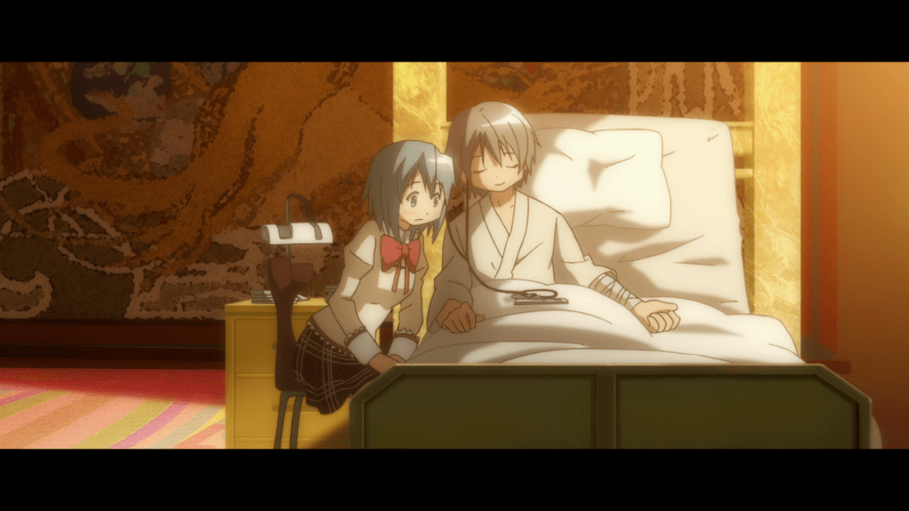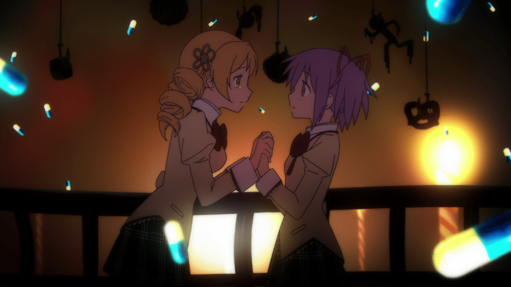 Anyone who’s seen this episode knows exactly why it stands out. It’s the ending. Much of this episode plays out similarly as the last one. Madoka and Sayaka continue their magical girl open house. Mami fights another monster of the week. Homura remains vaguely adamant that Madoka must not become a magical girl. There is of course some progress being made but fundamentally, the episode plays out the same. That is, until you get to the end. Just when you think it’s business as usual…Mami dies…in very disturbing fashion no less. Three episodes in and one of the main characters is now dead. This is why I urge anyone who’s somehow new to this show to go watch it. The shock and surprise I felt when I and many others who got to this scene…you simply can’t replicate that.