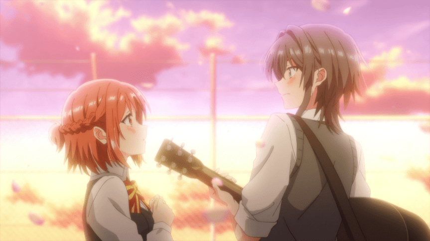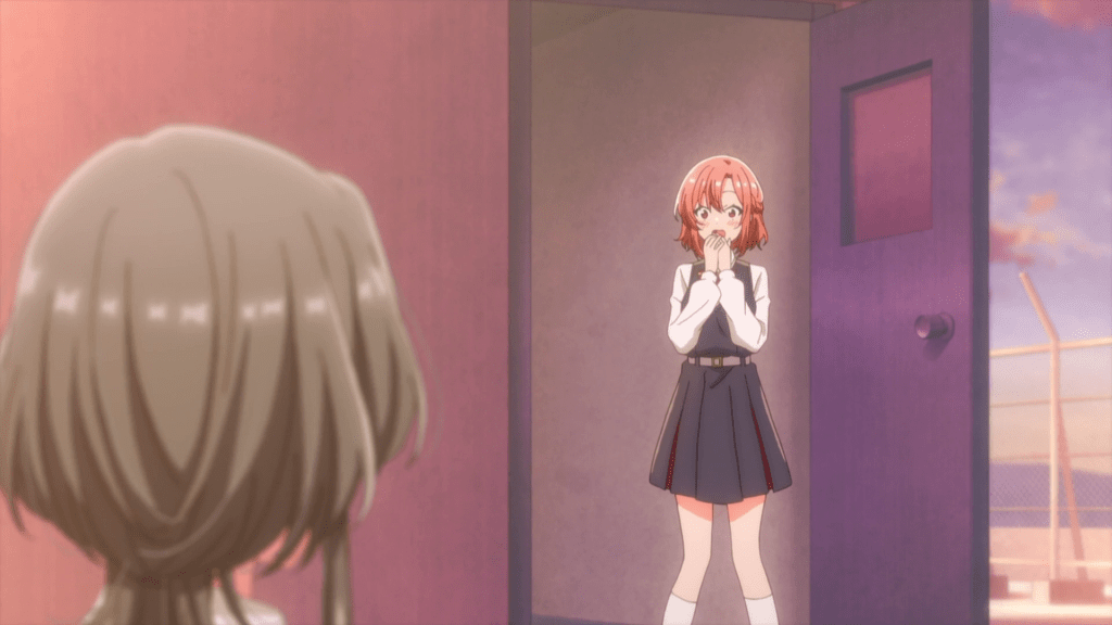 There’s a couple of insert songs here. Both of pretty good, especially thanks to Asami Seto’s singing. That’s a reassuring sign as I imagine music will play a big part in this show, what with it being Yori’s hobby and her main ticket to winning Himari’s heart. At the same time however, this premiere uses very short edits of the songs so I’m not 100% confident here. I can understand that for the second song but it is a strange move for the first one as it’s part of the big moment where Himari “falls” for Yori. Hopefully, this is just a fluke and it’s not the case for the rest of the series.