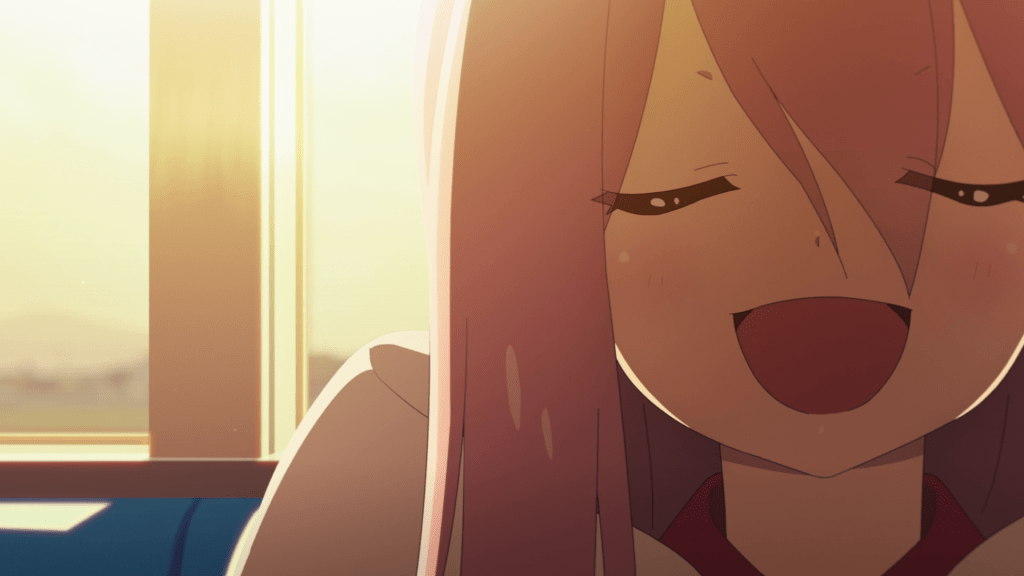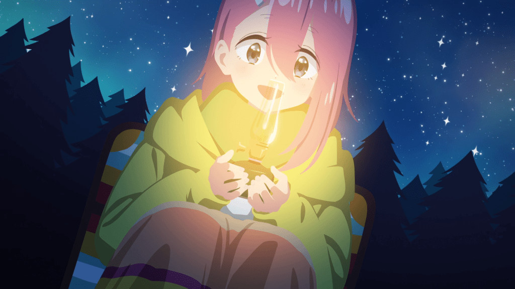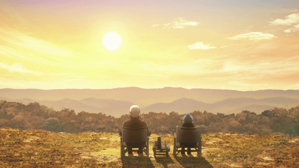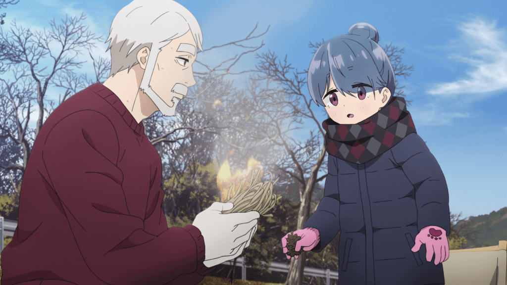 Having the two segments back to back lets you see how past Rin becomes her current self. In the flashback, she shows a little bit of curiosity towards camping but she grows fond of it as the day goes by, to the point that she’s bummed when she has to go home. It effectively sets her up for her first camping trip seen in the Season 2 premiere and all the camping she does as a teenager. The same can be said about Rin’s relationship with her grandfather. Young Rin feels a little intimidated by her grandfather and this changes when the two get to talk about camping. By adolescence, Rin is very close with her grandfather, with the present-day segment showing her looking fondly at the tent her grandfather gave her.