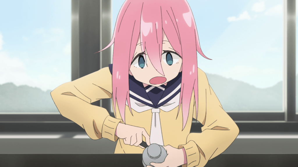 After the ED, we get a cameo appearance by Ayano (Tomoyo Kurosawa). Remember this girl?! She’s back and she has camping gear now so this show might be setting her up for a future adventure. I sure hope so. It can’t be helped since the show is following the manga but it did feel like a waste when Season 2 introduced Ayano and then proceeded to do squat with her. It’s about time that the anime finally rectifies this. I admit that it is hilarious when Ayano texts Rin and Rin responds by asking who she is. That has to be the show being self-aware. It’s so on point.