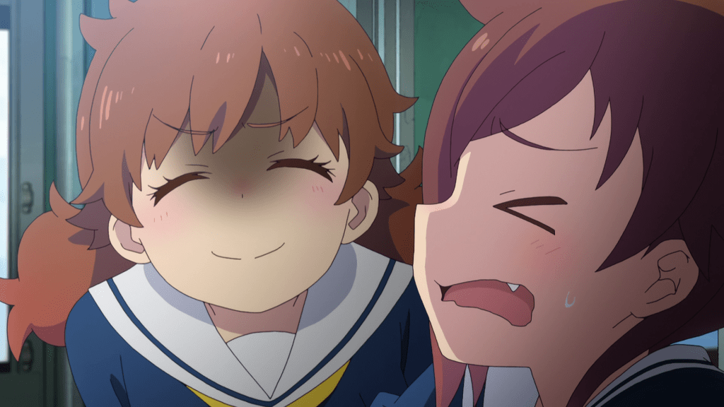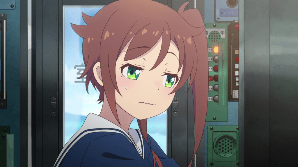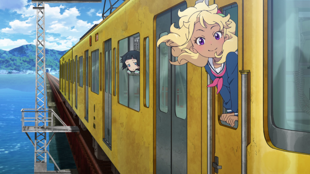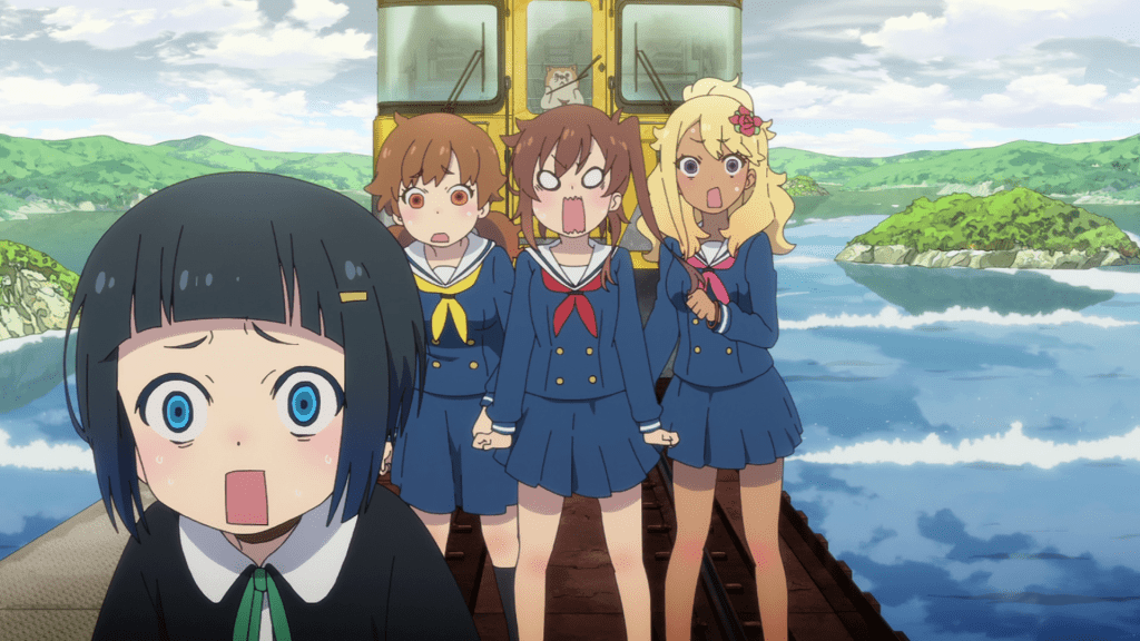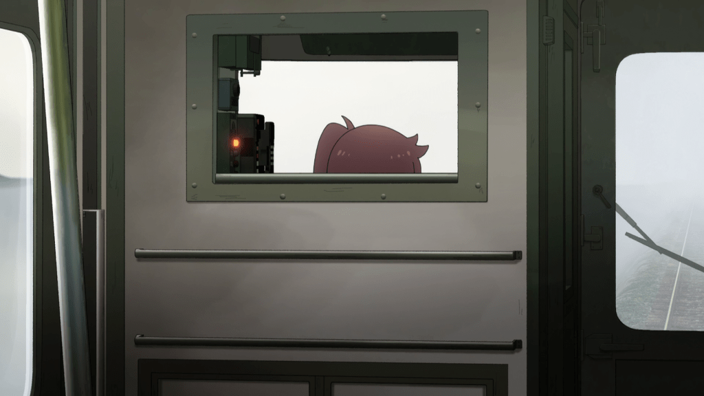 I was ready to see some really weird stuff this episode but to be honest, there isn’t a lot of that here. A good chunk of this episode is actually the gang bantering with each other inside the train. That may actually be a bold move for the show to make as it’s pretty much banking on the characters and the dialogue to carry the episode for the viewer. I do find it a little monotonous but there is some good dialogue here. In particular, there’s this good bit of drama of where Shizuru admits that she was planning to travel alone and after talking it over with Nadeshiko, she realizes that she’d have made her friends and make the same mistake as Yoka did when she left.