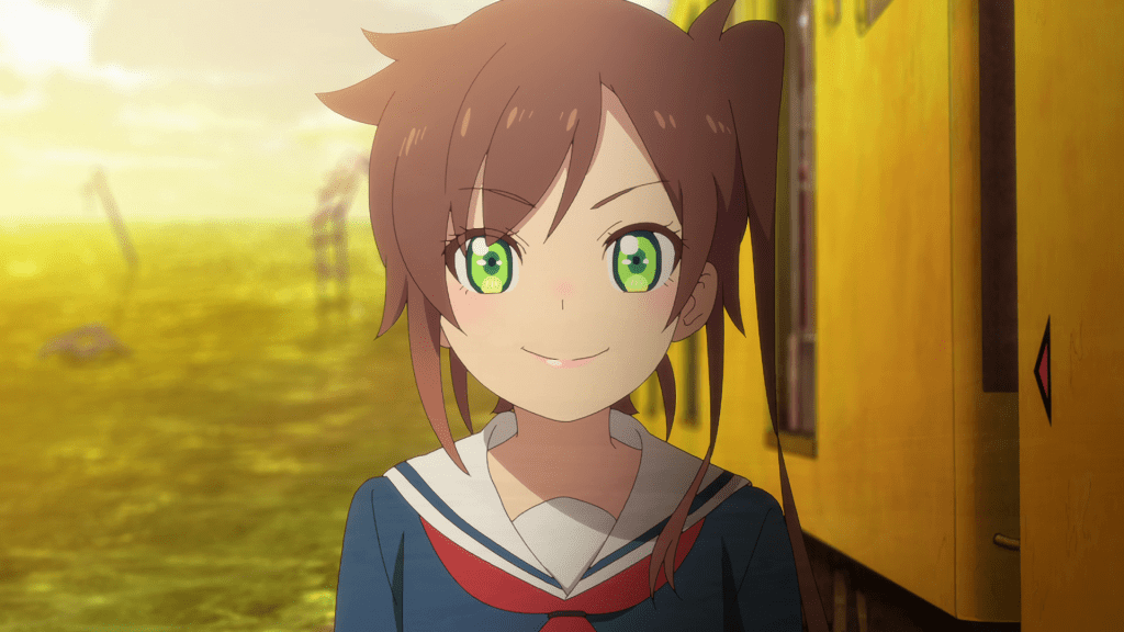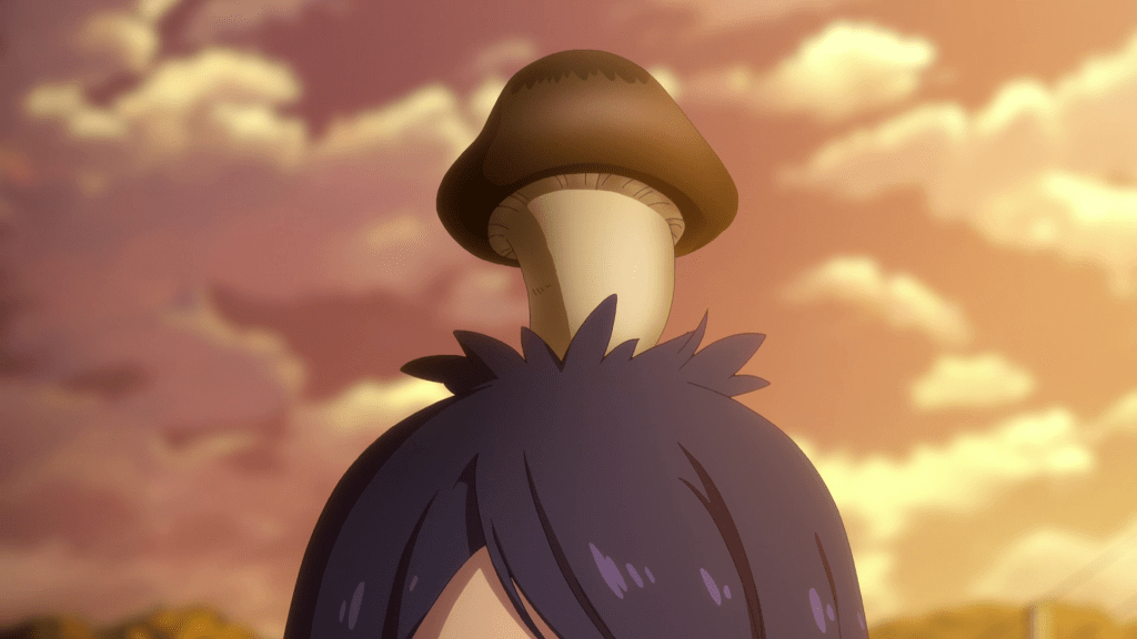 At the end of the episode, the girls stop at Higashi-Agano Station and they run into the locals in the area. What confounds them however is that all the locals have mushrooms growing on top of their heads, presumably setting us up for Episode 3. I imagine that will be where the show gets super weird again. No way the mushroom is the only side effect these people got from 7G. There must something else going on here.