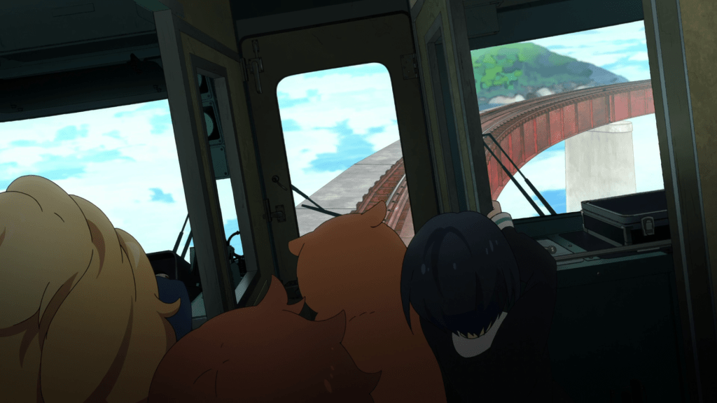This episode also establishes a communication system between Zenjiro and the girls. At 5:00 PM every day, Zenjiro will don his hat and contact the girls via morse code. I kind of question the practicality of this. Like, can both parties really do this as the girls travel further away from Agano? You especially have to wonder if this will still work given what happens to the railroad at the end of the episode. Still, this is an interesting lifeline for the girls to have, especially since they can only get so much help from Zenjiro due to his five minute time limit.