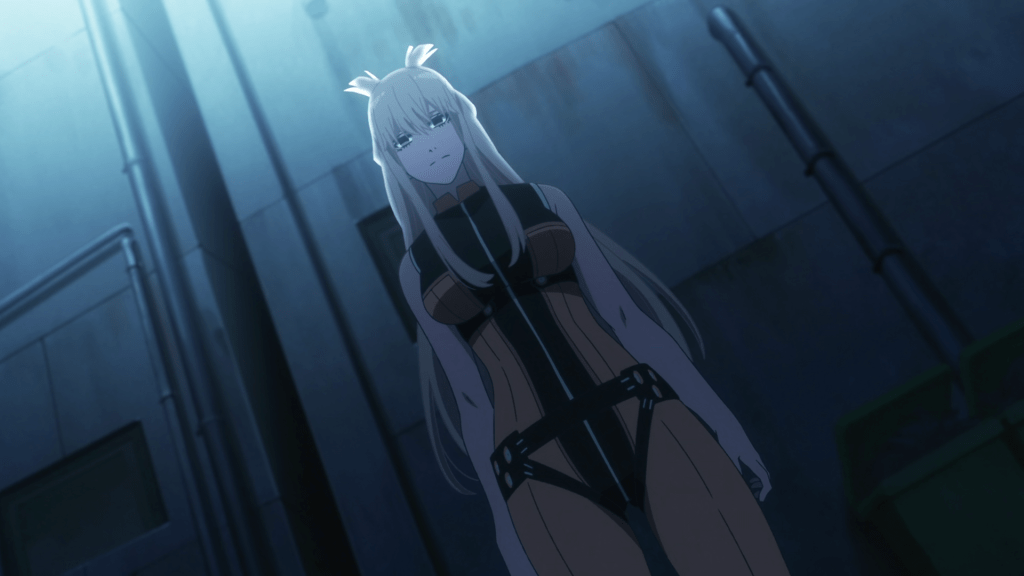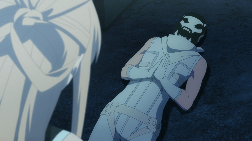 The one who is constantly getting D out of a pinch is Suzukiri. Towards the end of the episode, it’s revealed that all of Suzukiri’s actions are intentional. She is aware that D is a Duster and for whatever reason, she wants to ally with him in taking down the Dragon Keepers. Aside from the fact that she can simply rat D out, Suzukiri makes it very clear that she has him wrapped around her finger. She manages to get D to hand over his knife and while D is very stupid for complying, this nevertheless shows that Suzukiri is pretty manipulative. Suzukiri also shows that she can easily beat D in a fight so all things considered, D is powerless to oppose her. I said in the last post that Suzukiri interests me the most and that point still stands after two episodes. Someone needs to be the brains of this plot and Suzukiri most certainly fits the bill. Her personality also just makes her a very entertaining character. The lack of a backstory right now is a bit concerning but not knowing why Suzukiri wants to defeat the Dragon Keepers does give her an mysterious and intriguing aura.