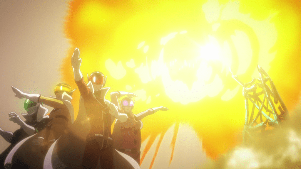 Loser Ranger! makes it look like D is dead but I don’t buy it. I think D has cheated death like he has in the past. The post-credit scene shows a new monster running amok but I doubt they’ll take D’s place. I wouldn’t be opposed to Suzukiri taking over as the protagonist, she is easily the best character in the show, but it would be weird to change gears this early on. Plus, making Suzukiri the protagonist would shift attention away from the discrimination towards the Monster Army. One problem with D coming back is what appearance he’ll take since everyone seems to know what his default human form looks like. I notice that the OP and ED implies that D will impersonate Hibiki again so that’ll probably be his disguise going forward. Here’s hoping D and Hibiki will point at each other like the classic Spider-Man meme.