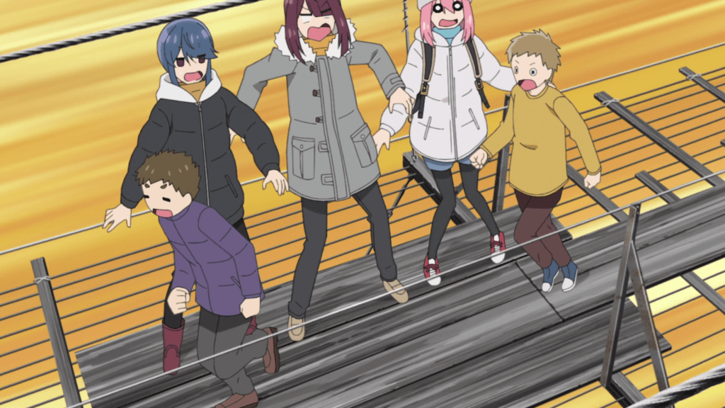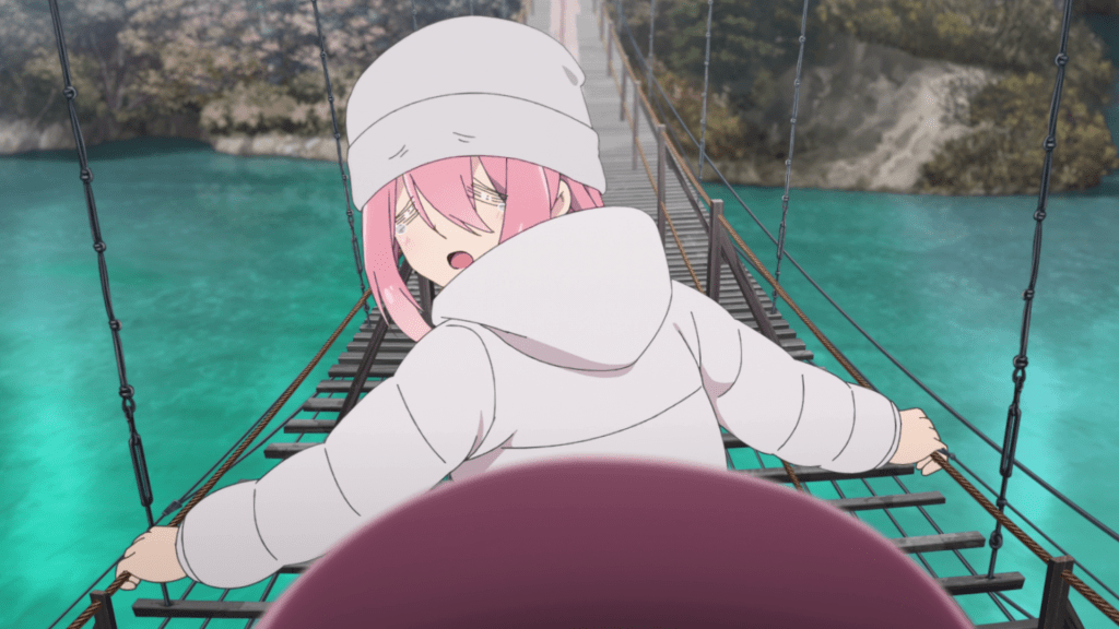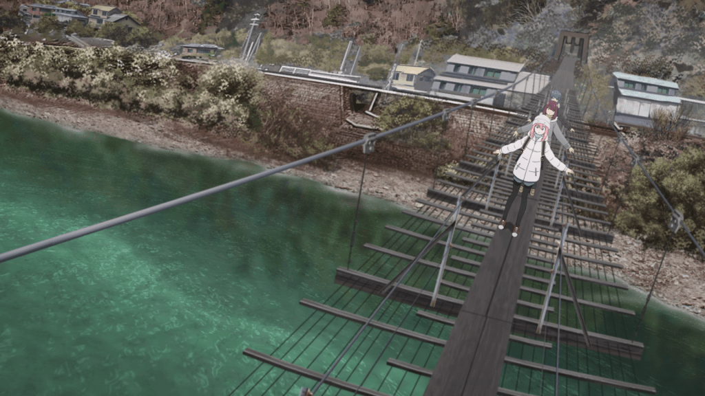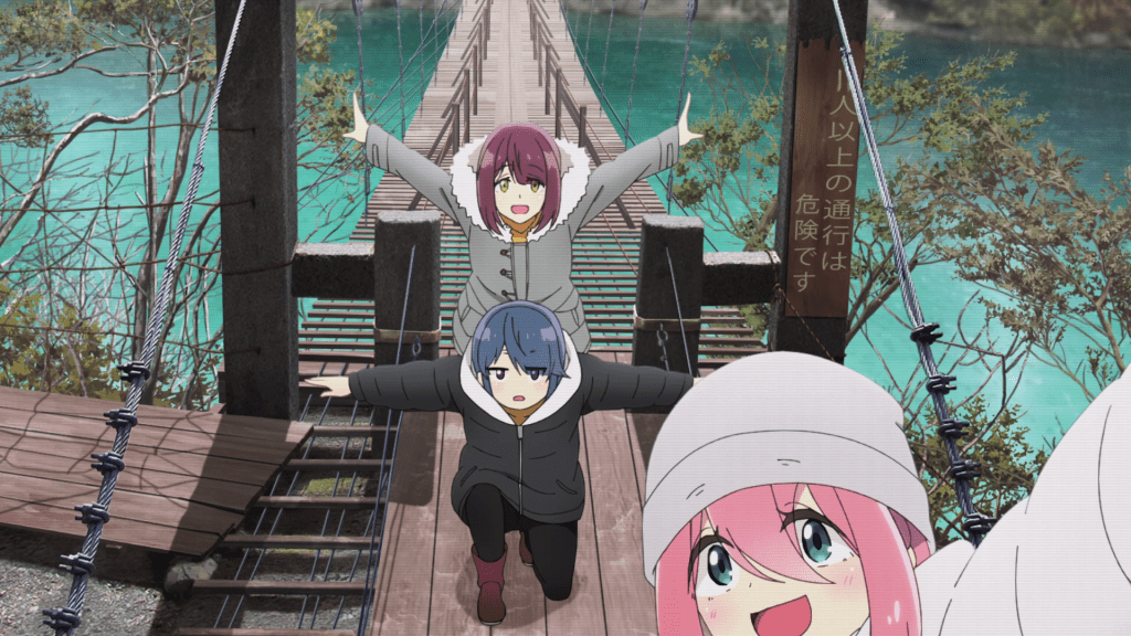 There admittedly aren’t a ton of specifics to go over this episode. The girls got the bulk of their adventure out of the way and what’s left on the to-do list is more of the same. There’s a couple more bridges for the girls to check out as well as the usual pit stops. This is starting to get old but to the show’s credit, there is still a couple of laughs to be found here. I particularly enjoyed the part where Nadeshiko tries a suspension bridge for the first time and neither Rin nor Ayano share her fear as they’ve been desensitized by the bridge at Lake Hatanagi. That bridge really did a number on those two.
