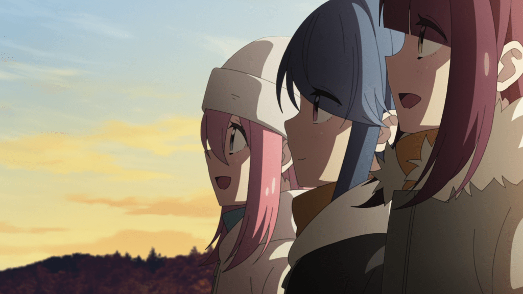 Halfway through Season 3 now. You know, looking at the whole picture so far, it does feel like Season 3 is pacing slowly, even by Laid-Back Camp standards. It currently has only one major trip under its belt. I don’t mind it for now though as the first trip has been a lot of fun. Speaking of which, it turns out that this trip has a little bit of gas left in the tank so me parting ways with it last episode review looks really stupid right now. In my defense, I didn’t expect this trip to last long as the Izu adventure in Season 2. Usually when we get to a sunrise scene, the girls pack their bags and go home. It’s a nitpick, really. I’m all for this trip lasting one more episode.