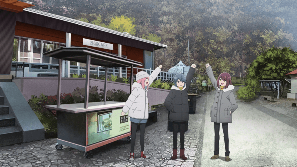 At one point, the two ladies Nadeshiko met two episodes ago, Chita and Yashiro, make a return but their reappearance is pretty inconsequential. It’s just a bit of small talk with them at restaurant before our main characters resume their trip. I’m honestly a bit puzzled with the inclusion of Chita and Yashiro. Compared to other minor characters, they ultimately don’t contribute much to the plot so I have to wonder if they might reappear again down the line.