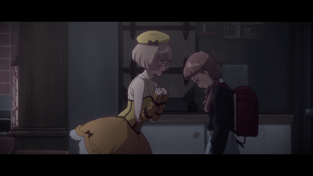This scene is also the only time Episode 6 brings up the kiss from last episode. Yoru brings it up to steer Kano away from thinking over her estranged relationship with her mother. It’s insane for the show to not address the kiss in greater detail but the fact it is acknowledged suggests that this plot thread is far from over. I must say, between Yoru’s pose when she asks about the kiss and Kano fumbling her way into giving an answer, it’s hard not to think that there is something romantic going on between them.